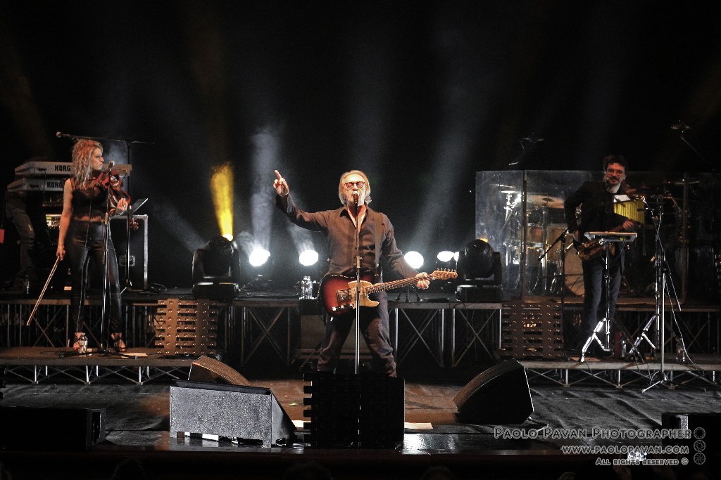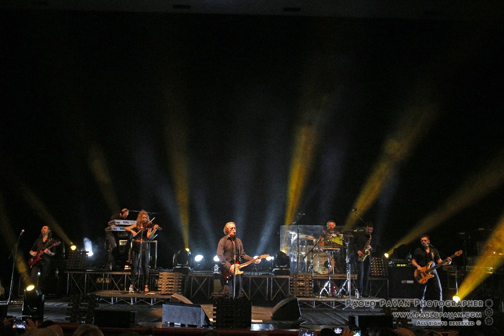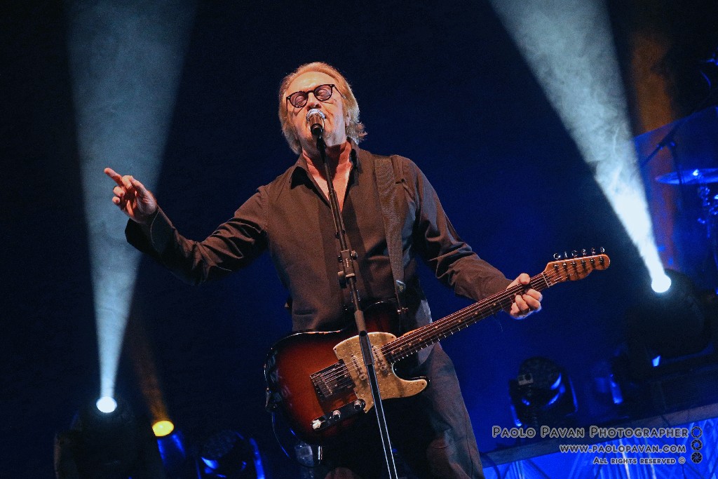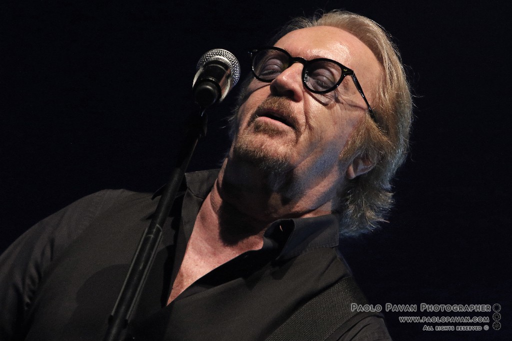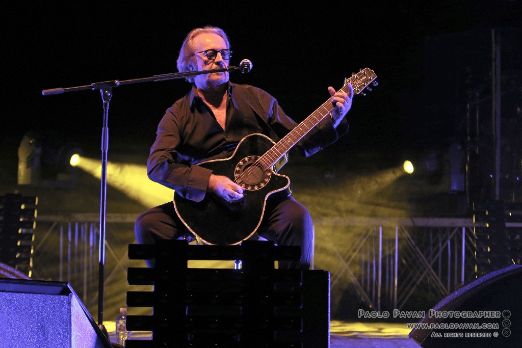 Entra solo, ma elegante, camicia e gilet nero, capello biondo sempre fluente, poche parole per ricordare che questa è la sua città e che sognava un giorno di poter riempire questo meraviglioso teatro, per poi lasciare spazio a voce e chitarra ad alcuni suoi pezzi degli esordi, “Donna amante mia”, “Roma nord”, “Se non avessi te” e “Gli innamorati”. Un bel momento, intimo, che cede il passo alla sua anima rock, imbraccia la sua Fender Telecaster e con l’ingresso della band, di ben sei elementi, comincia a scaldare il teatro. Arrivano i suoi grandi successi, alcuni scritti e portati alla fama da altri, tra cui, “Ti Amo”, “Gli altri siamo noi”, “Gente di Mare”, data a Raf e “Io camminerò”, cantata da Fausto Leali. Non manca “Si può dare di più” con cui vinse il festival assieme a Ruggeri e Morandi e i grandi successi che gli permisero di vendere oltre 80 milioni di copie, come “Stella Stai”, “Notte rosa”, “Io muoio di te” ,”Immensamente“ ,“Tu” e “Gloria” con cui chiude il concerto, dando spazio anche a sax e chitarra solista. Ci sono due bei momenti internazionali con “Sound of silence” di Simon&Garfunkel” e soprattutto “My Sharona” dei The Knack, che consentono un bel momento corale con la band. Un po’ spazio anche ai due nuovi inediti che esegue solo dal vivo, ma era davvero per i suoi storici successi che la gente è venuta e che ben presto ha abbandonato i comodi posti per correre sotto il palco a vivere la parte finale della serata. Grazie ad Associazione Culturale Radar, che ce lo ha riportato a casa.