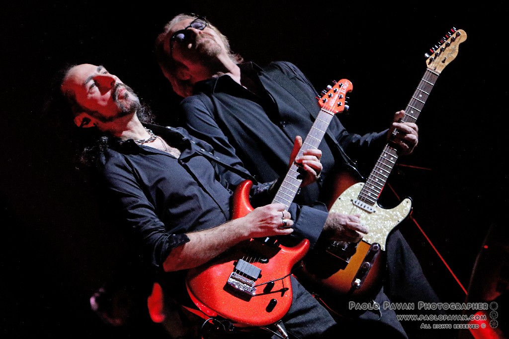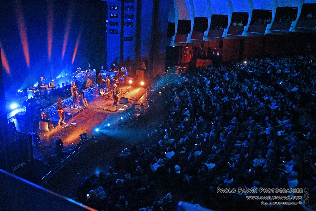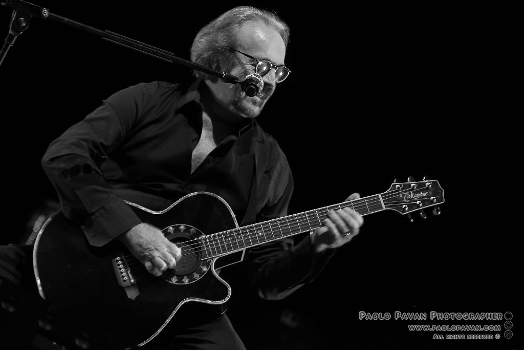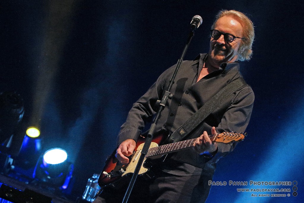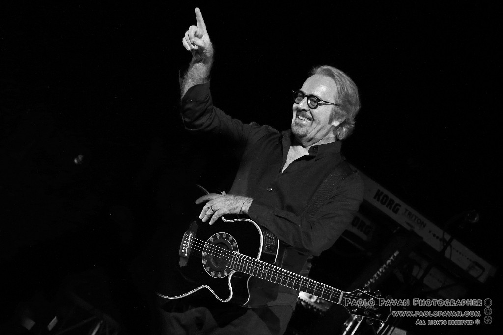 Entra solo, ma elegante, camicia e gilet nero, capello biondo sempre fluente, poche parole per ricordare che questa è la sua città e che sognava un giorno di poter riempire questo meraviglioso teatro, per poi lasciare spazio a voce e chitarra ad alcuni suoi pezzi degli esordi, “Donna amante mia”, “Roma nord”, “Se non avessi te” e “Gli innamorati”. Un bel momento, intimo, che cede il passo alla sua anima rock, imbraccia la sua Fender Telecaster e con l’ingresso della band, di ben sei elementi, comincia a scaldare il teatro. Arrivano i suoi grandi successi, alcuni scritti e portati alla fama da altri, tra cui, “Ti Amo”, “Gli altri siamo noi”, “Gente di Mare”, data a Raf e “Io camminerò”, cantata da Fausto Leali. Non manca “Si può dare di più” con cui vinse il festival assieme a Ruggeri e Morandi e i grandi successi che gli permisero di vendere oltre 80 milioni di copie, come “Stella Stai”, “Notte rosa”, “Io muoio di te” ,”Immensamente“ ,“Tu” e “Gloria” con cui chiude il concerto, dando spazio anche a sax e chitarra solista. Ci sono due bei momenti internazionali con “Sound of silence” di Simon&Garfunkel” e soprattutto “My Sharona” dei The Knack, che consentono un bel momento corale con la band. Un po’ spazio anche ai due nuovi inediti che esegue solo dal vivo, ma era davvero per i suoi storici successi che la gente è venuta e che ben presto ha abbandonato i comodi posti per correre sotto il palco a vivere la parte finale della serata. Grazie ad Associazione Culturale Radar, che ce lo ha riportato a casa.