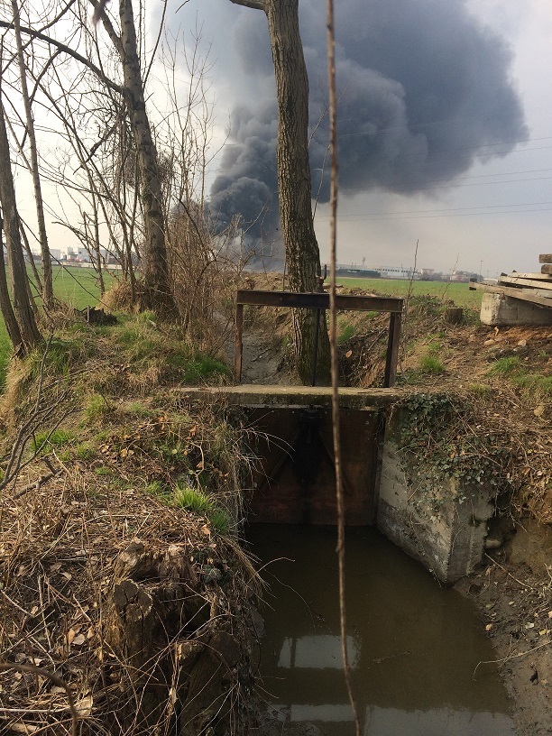 Si è provveduto altresì a far confinare in un breve tratto le acque di spegnimento che confluivano in un canale adiacente la ditta, evitando così la dispersione delle acque contaminate nella rete irrigua.