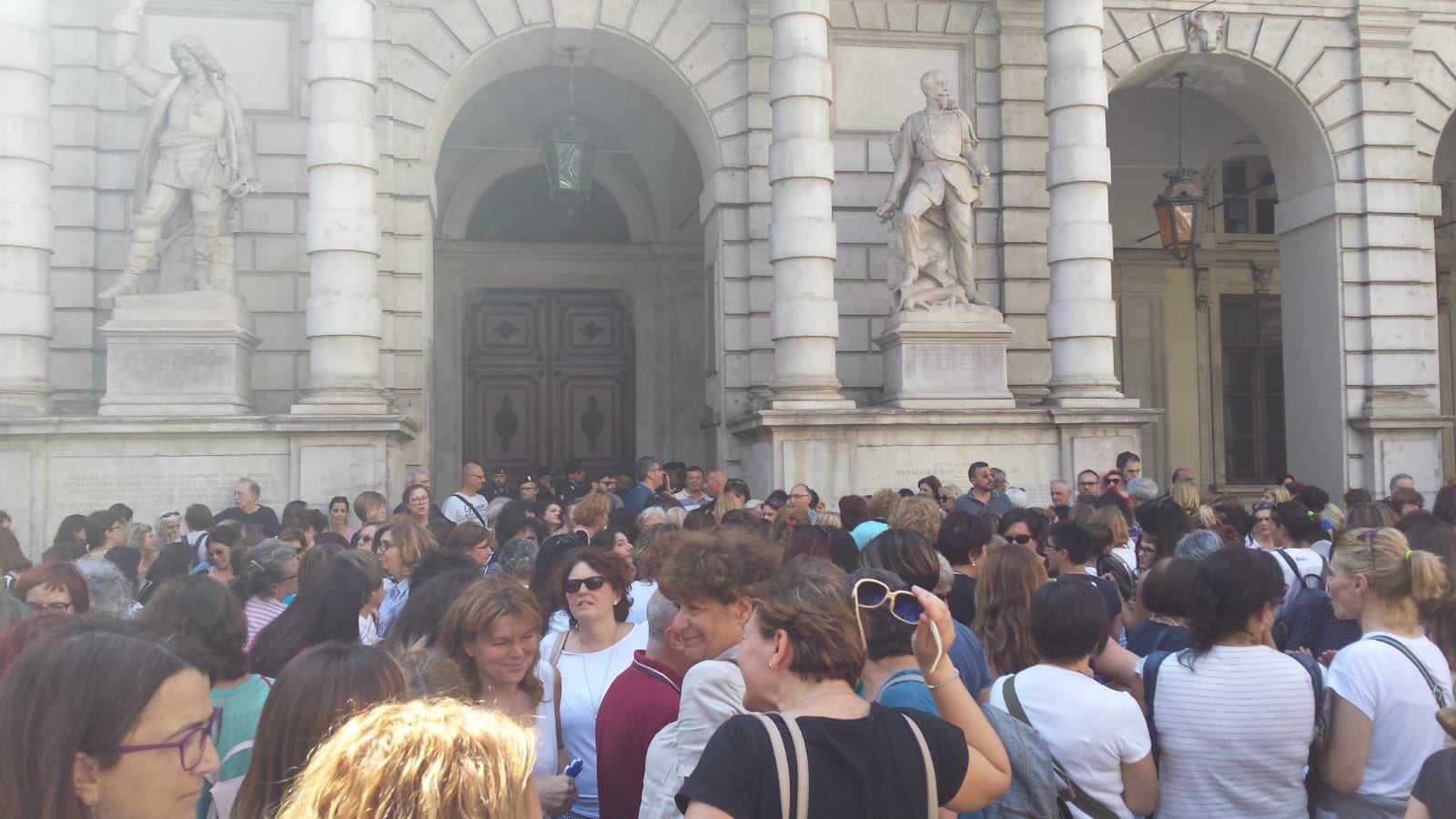 Manifestazione davanti a Palazzo di Città da parte dei lavoratori del settore educativo che chiedono di incrementare il personale per il prossimo anno scolastico. “Nei nidi d’infanzia e nelle scuole dell’infanzia – sottolineano i manifestanti – molte educatrici e insegnanti andranno in pensione e per ora non ci sono in programma assunzioni”.
