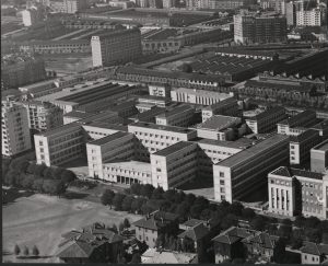 Comincia così una storia difficile, fatta di decisioni e ripensamenti, che passa attraverso i bombardamenti del 1942 dell’ex Museo Industriale, in Via dell’Ospedale, e arriva irrisolta al secondo dopoguerra. Nella seconda metà degli anni quaranta, quando lezioni e laboratori si concentrano al Castello del Valentino, l’idea di una nuova sede non è abbandonata: dopo qualche incertezza, l’area è definitivamente individuata in quella dell’ex Stadium comunale, tra i corsi Peschiera, Castelfidardo, Montevecchio e Duca degli Abruzzi. Qui sorgerà il complesso di edifici, inaugurato nel 1958, destinato a essere ampliato negli ultimi decenni del Novecento con la costruzione della Cittadella Politecnica e, ancora oggi, oggetto di ulteriori progetti di sviluppo da realizzarsi nei prossimi anni.