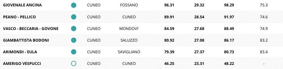 Tra i Licei scientifici a Torino in testa alla classifica il Galileo Ferraris, ma spiccano per i mega punteggi il Pascal di Giaveno e soprattutto lo scientifico Ancina di Fossano, nel Cuneese, con un indice da record di 96.31.