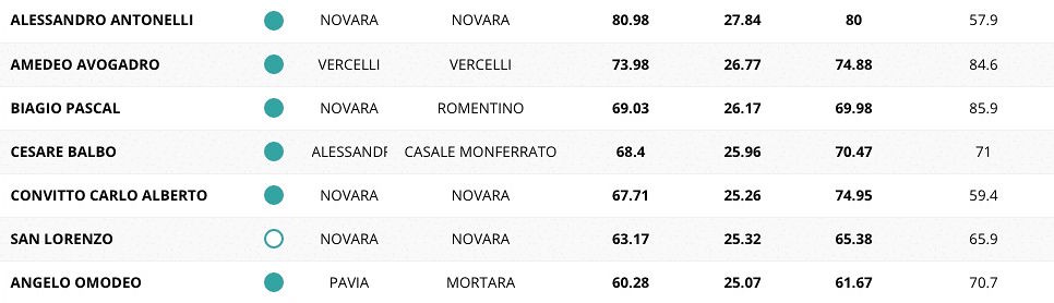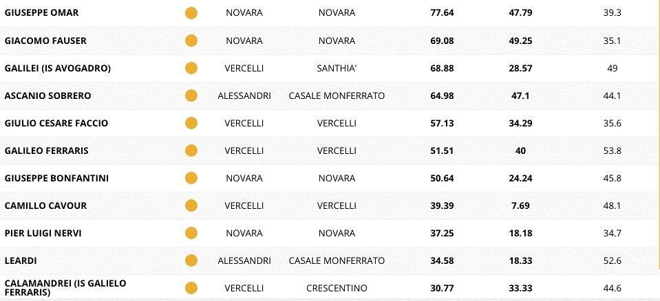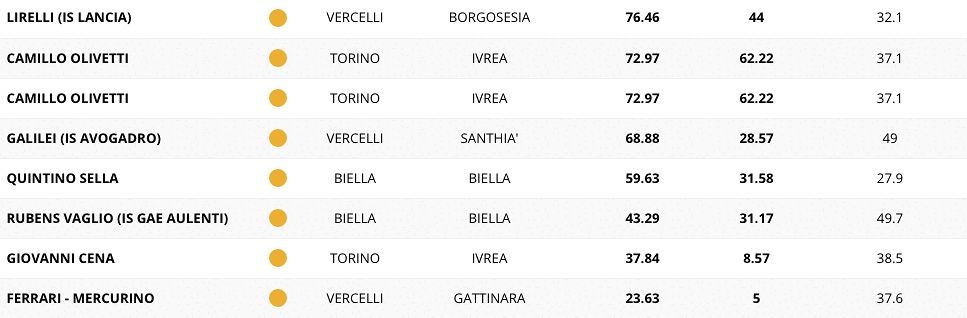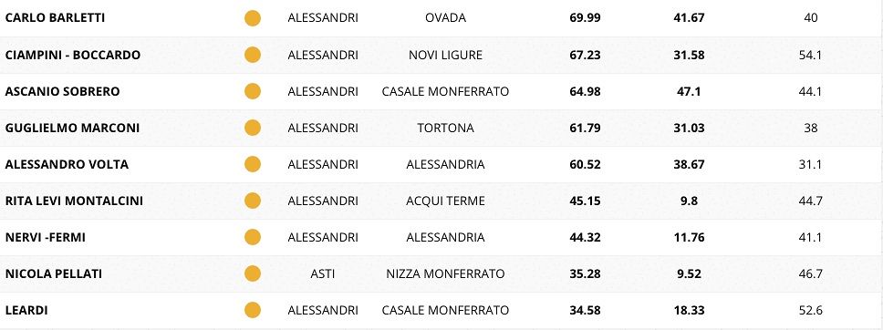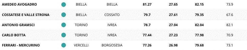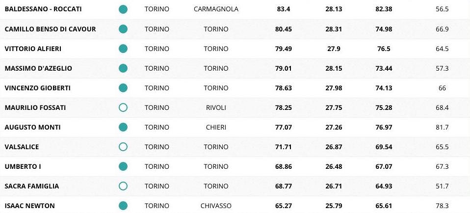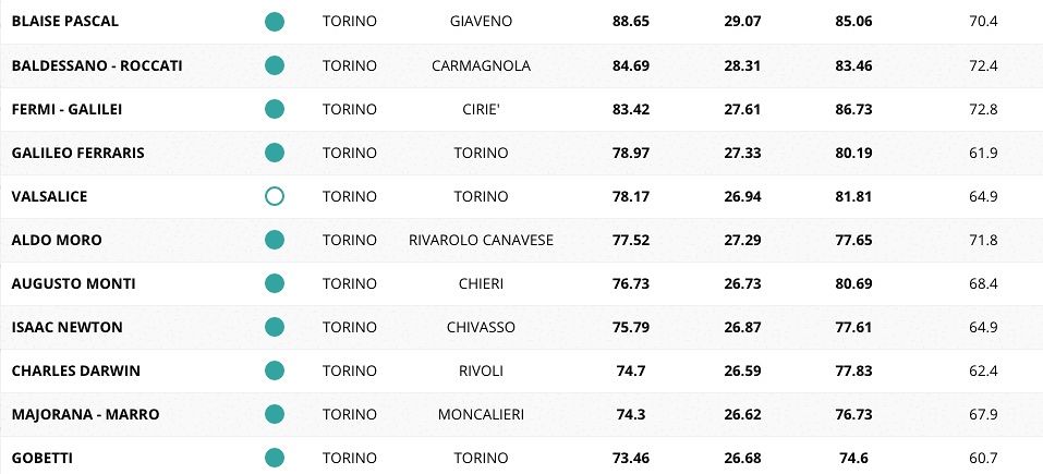 Tra i Licei scientifici a Torino in testa alla classifica il Galileo Ferraris, ma spiccano per i mega punteggi il Pascal di Giaveno e soprattutto lo scientifico Ancina di Fossano, nel Cuneese, con un indice da record di 96.31.