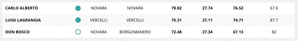 A Torino il primo liceo classico resta il Cavour seguito a breve distanza da Alfieri e D’Azeglio. Fuori dal capoluogo spiccano il Baldessano Roccati di Carmagnola il Peano di Cuneo e il Bodoni a Saluzzo