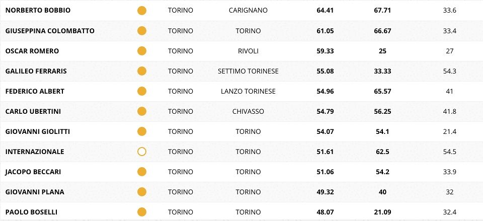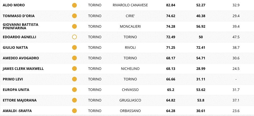 Tra i linguistici a Torino, il primo posto del Gioberti . Fra i tecnici torinesi in testa il Pininfarina davanti all’Avogadro. Il leader nei Licei Artistici a Torino è il Primo Liceo Artistico.