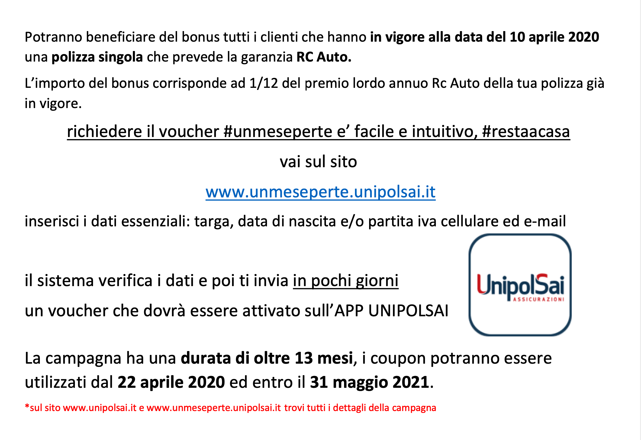 Nel frattempo UnipolSai ha deciso di restituire ai propri clienti un mese di polizza.