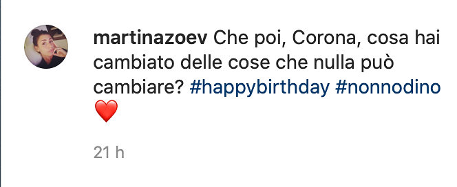 “Ma voi abitate tutti assieme oppure ve ne siete fregati dei divieti di spostamento ed assembramento?”. E’ uno dei commenti alla foto postata su Instagram da Martina, moglie del calciatore della Juventus, Bonucci, per il compleanno di nonno Dino. “Che poi, Corona, cosa hai cambiato delle cose che nulla può cambiare? #happybirthday #nonnodino”, si legge nel post che ha scatenato le critiche.