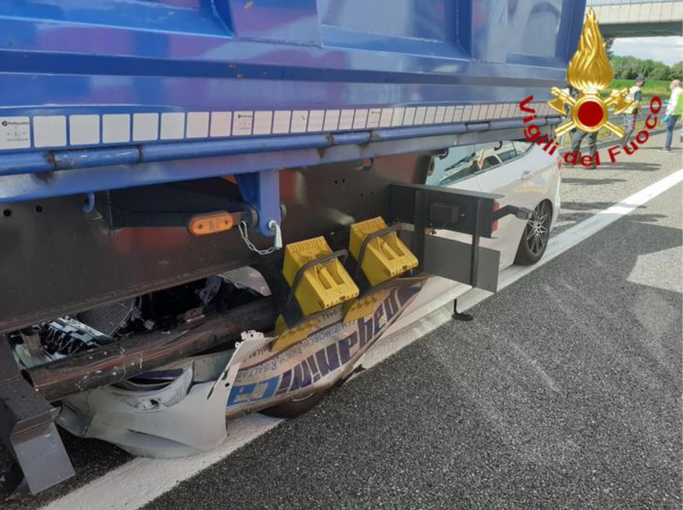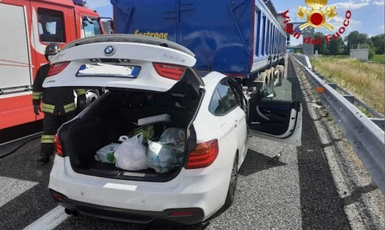 Una Bmw è finita sotto ad un autoarticolato a seguito di un incidente avvenuto oggi pomeriggio sull’autostrada A4, nel territorio di Cigliano (Vercelli). Impressionante la scena che si è presentata ai soccorritori, una squadra dei vigili del fuoco di Livorno Ferraris e il personale del 118: la parte anteriore dell’automobile è rimasta incastrata sotto al rimorchio del mezzo pesante. I medici hanno effettuato manovre di primo soccorso agli occupanti della Bmw, che hanno riportato ferite da codice giallo; successivamente i due feriti sono stati trasportati al Pronto Soccorso dell’ospedale di Chivasso per ulteriori cure. Sul posto, oltre a vigili del fuoco e 118, anche polizia stradale e il personale di Autostrade.