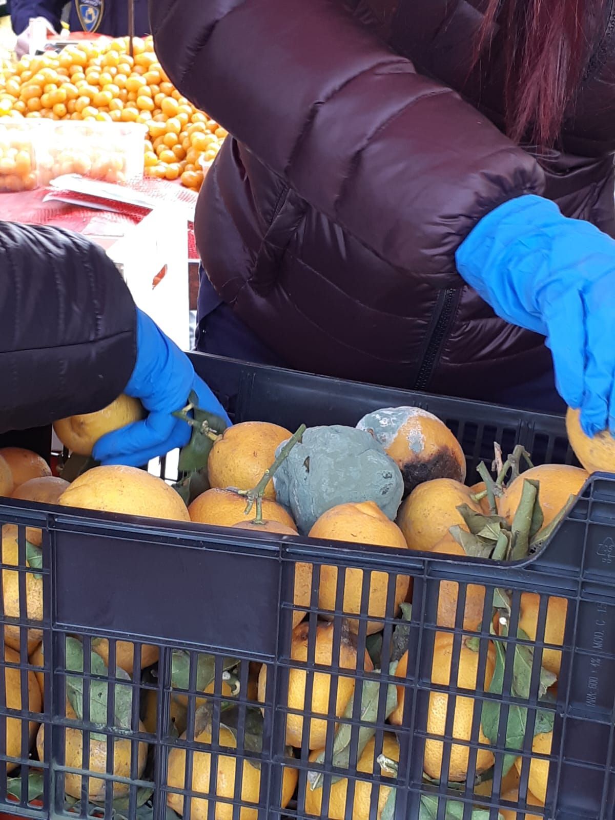 I vigili, girando tra le bancarelle, hanno notato alcuni limoni con tracce di muffa esposti su un banco e, avvicinandosi per far notare il problema all’addetta alla vendita, si sono accorti che il quantitativo di merce avariata era ben più consistente. Oltre ai limoni in stato di alterazione, dietro e di fianco al banco, hanno trovato diverse pile di cassette di mandarini completamente ricoperti di muffe.