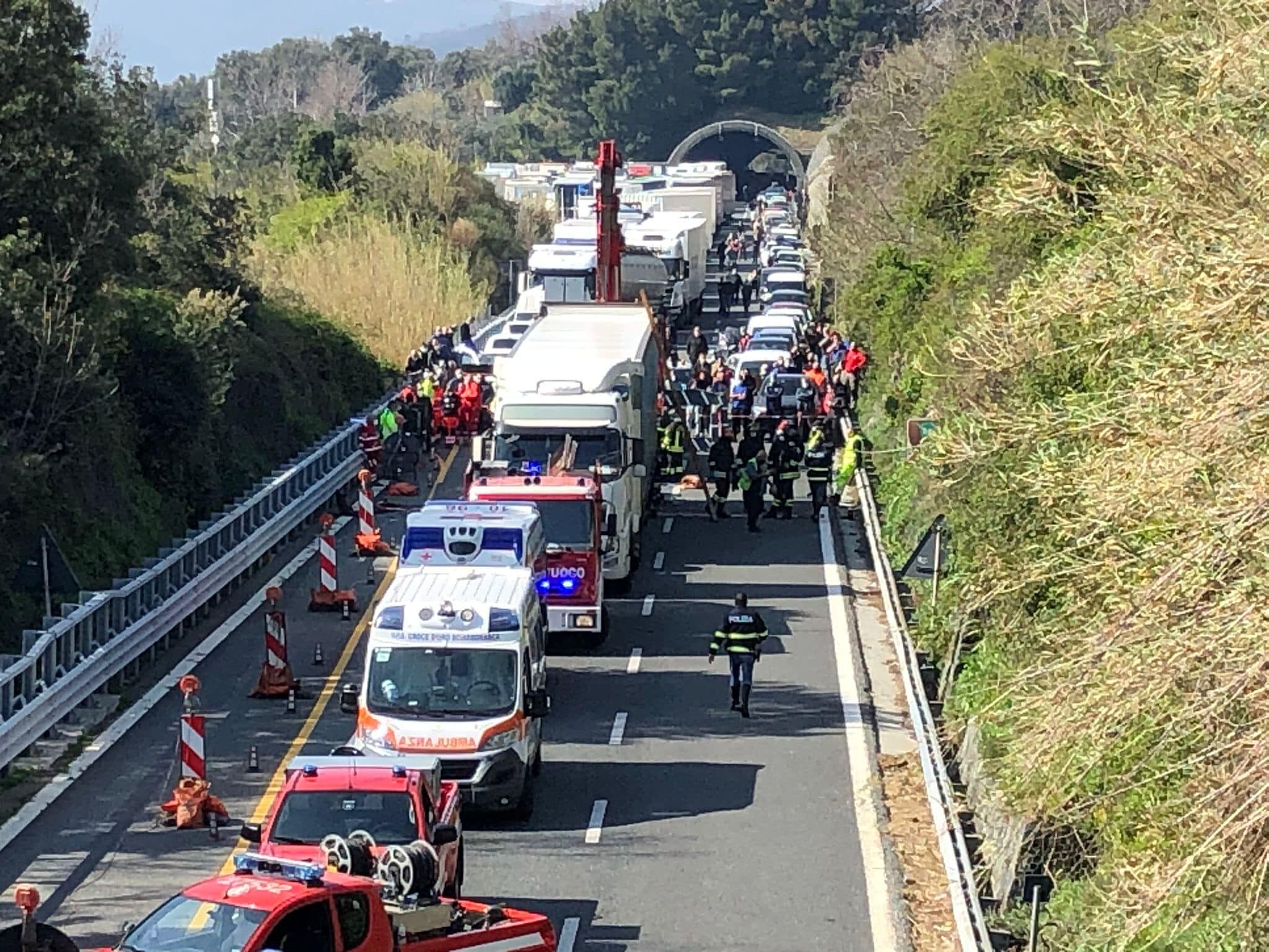 Sul posto gli uomini del 118 insieme ai vigili del Fuoco, che hanno dovuto estrarre il corpo dell’uomo con una gru, le pattuglie della Polizia Stradale ed il personale della Direzione 1° Tronco di Genova di Autostrade per l’Italia.