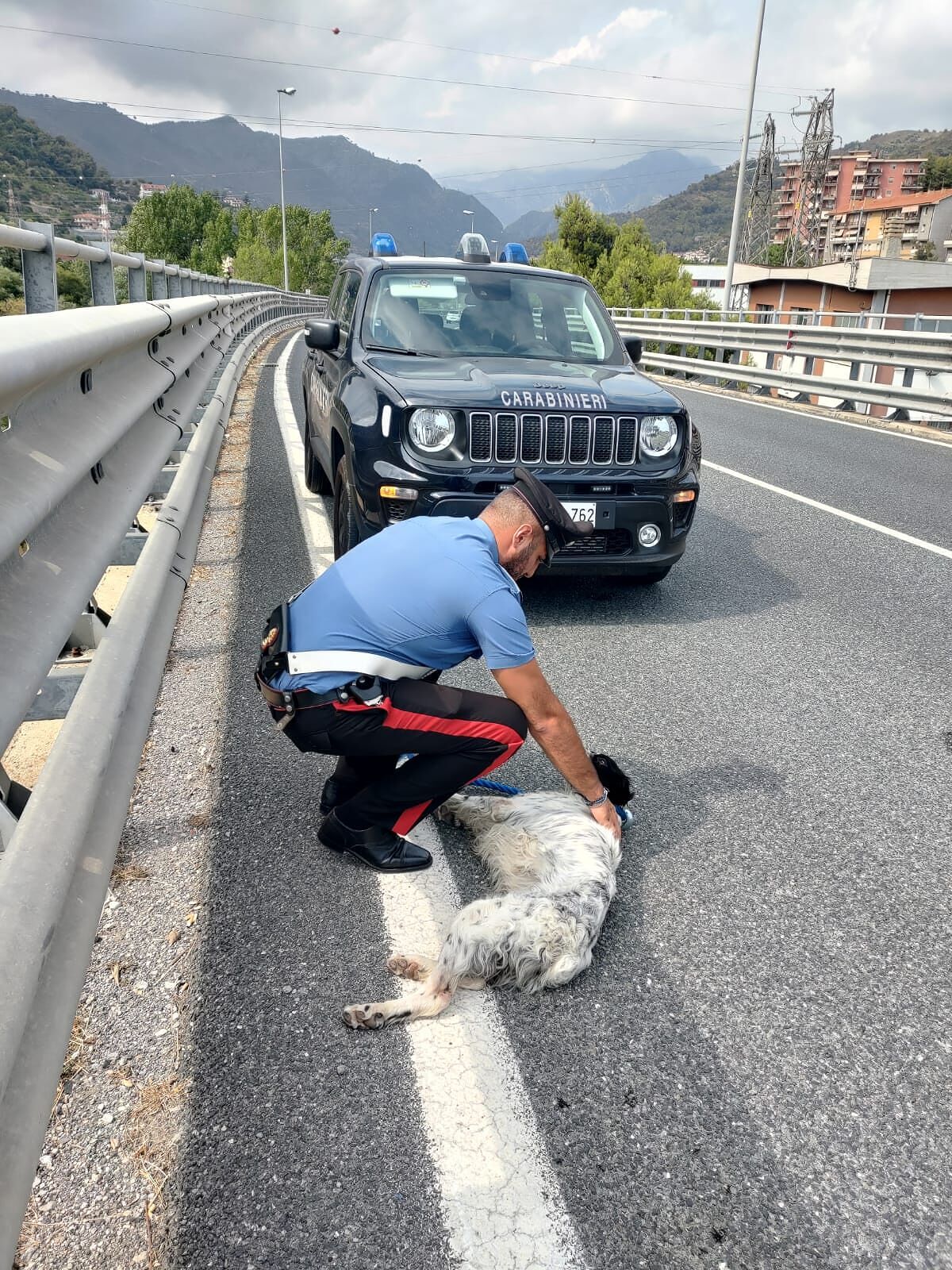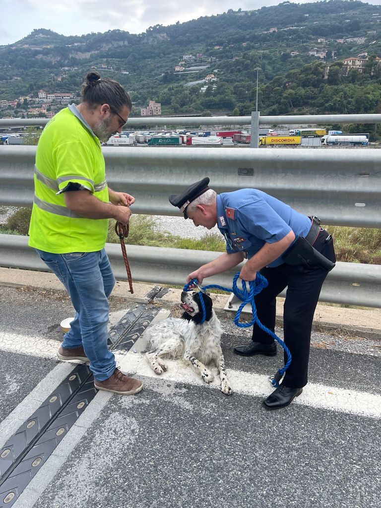 Ventimiglia, salvato dai carabinieri cane che vagava sul cavalcavia