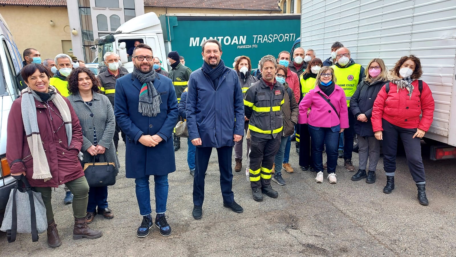 Sono partiti oggi pomeriggio, alle 16,30 dalla sede del distaccamento dei vigili del fuoco volontari di Grugliasco, in piazza Matteotti 39, tre furgoni dei Vigili del Fuoco forniti dal Comando Provinciale di Torino, oltre a uno offerto da Michele Lovera, dell’omonima ditta di catering di Grugliasco, un altro della società Cosmetici spa, un sesto furgone messo a disposizione dall’associazione Lyons di Collegno “Certosa Reale” e uno della società Ett-Italia.