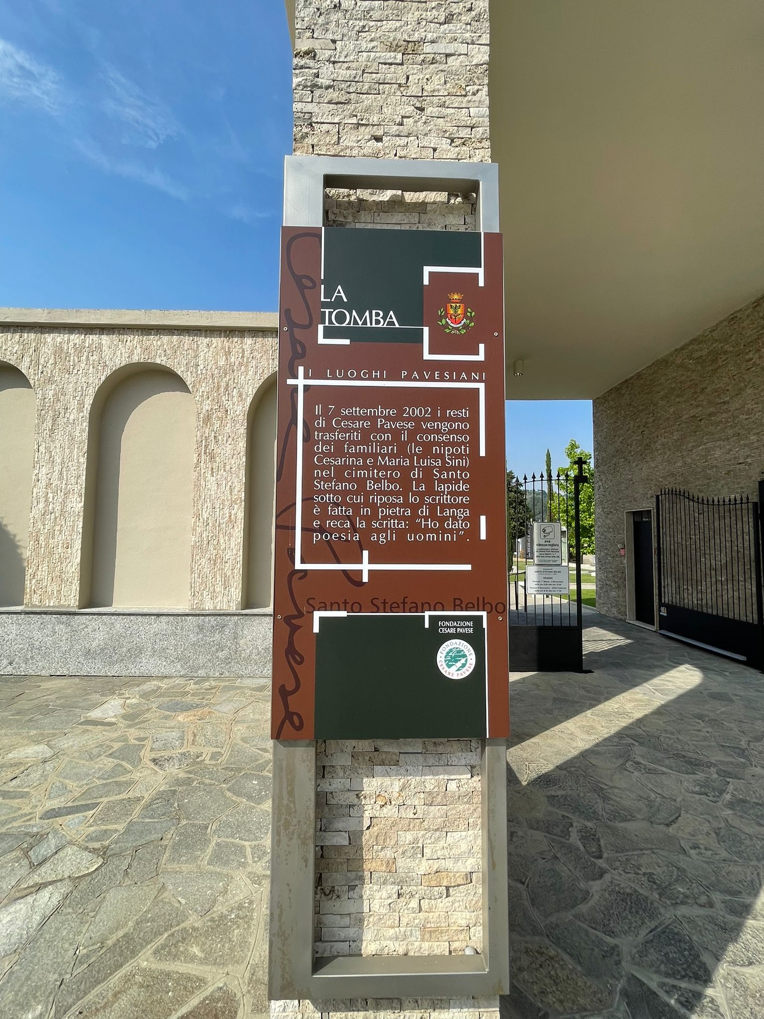 Sono stati presentati nella giornata di ieri, mercoledì 15 giugno, presso il cimitero di Santo Stefano Belbo, i lavori di valorizzazione dell’area destinata a tomba dello scrittore Cesare Pavese, realizzati nell’ambito degli interventi previsti dal piano di sviluppo locale “Un paese ci vuole”, promosso dall’Amministrazione comunale guidata dal sindaco Laura Capra.