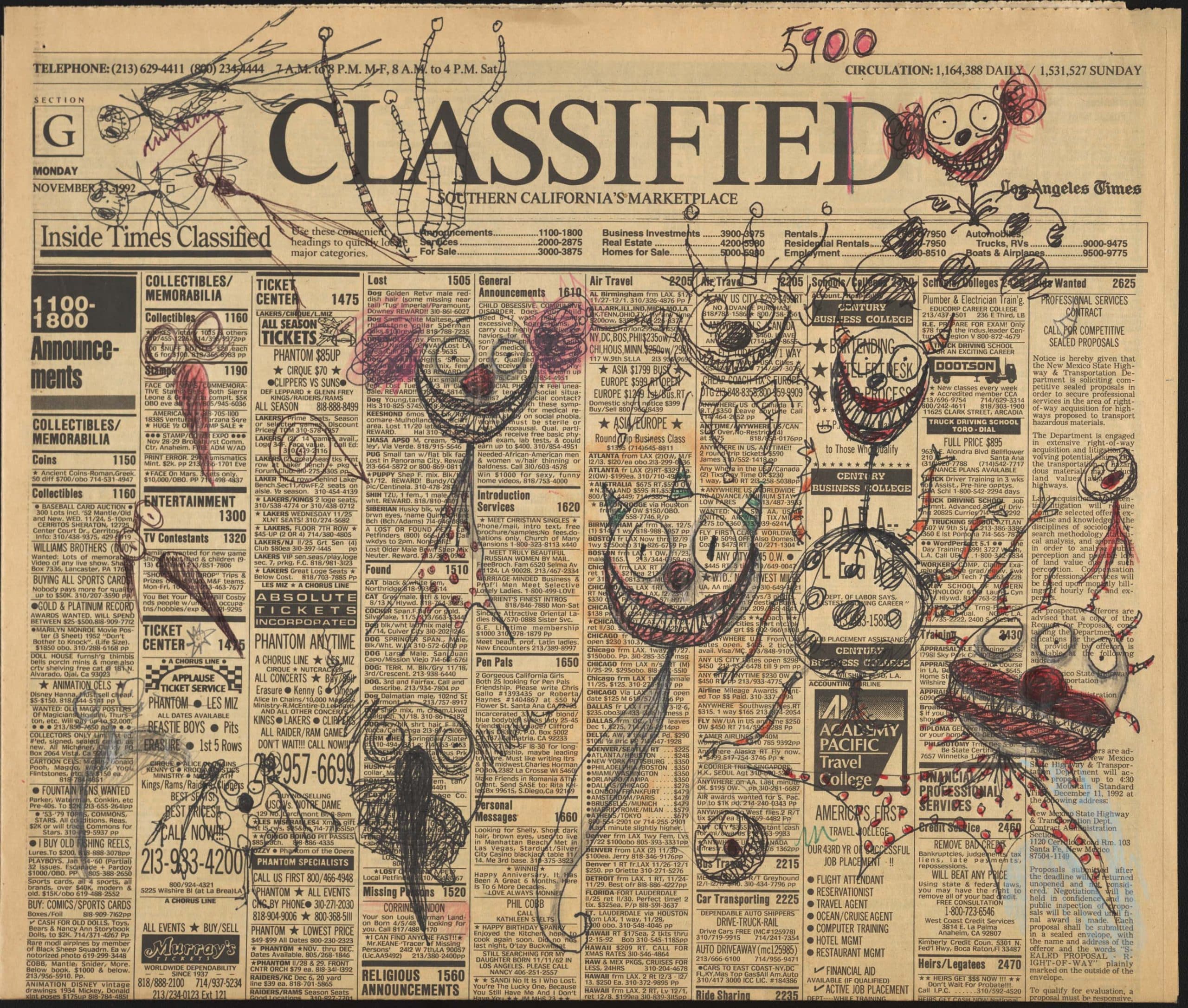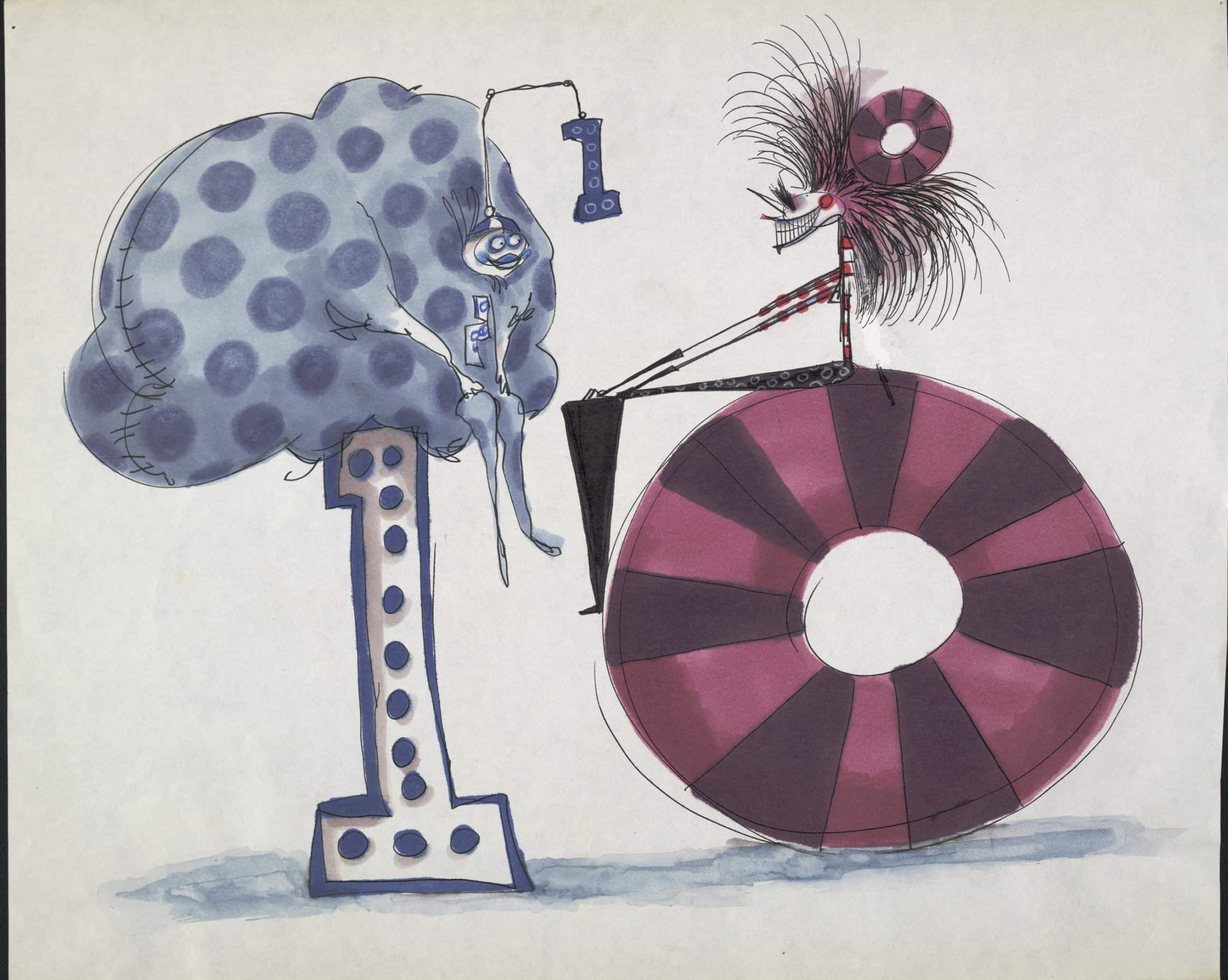Molto prima del successo critico e commerciale nei generi live-action e animazione, Burton si è ispirato ai film in televisione, alle animazioni, ai fumetti sui giornali, ai miti e alle favole raccontate a scuola e ad altre forme di cultura popolare, incorporando queste influenze di sempre nella sua arte e nei suoi film. Gli schizzi della sua infanzia dimostrano la varietà di Burton e richiamano il lavoro dei suoi predecessori, tra cui fumettisti e illustratori classici come Edward Gorey, Charles Addams, Don Martin e Theodore Geisel. Anche l’impatto dei film di mostri giapponesi, del cinema espressionista, del catalogo horror degli Universal Studios e dei maestri della suspense William Castle e Vincent Price permeano il suo lavoro.
