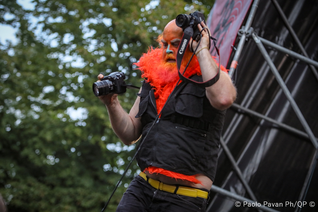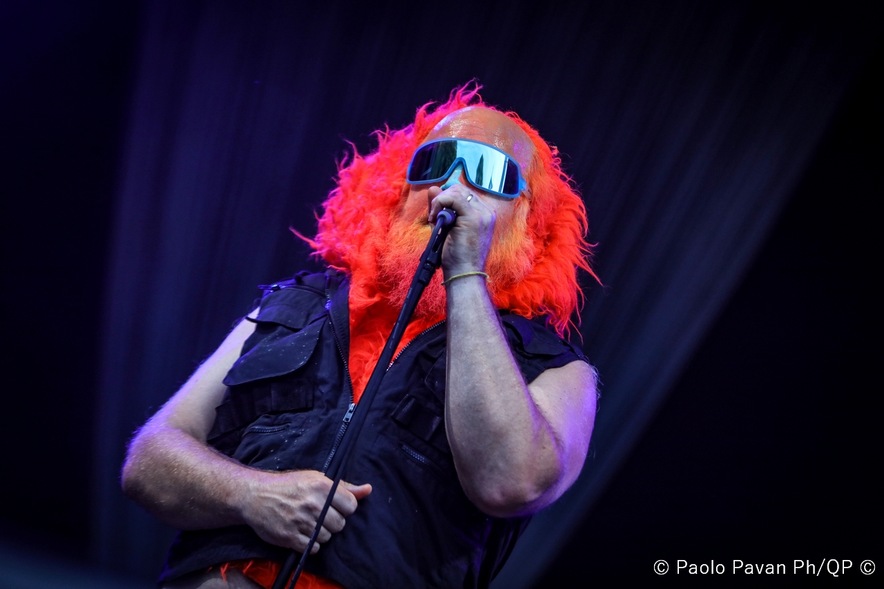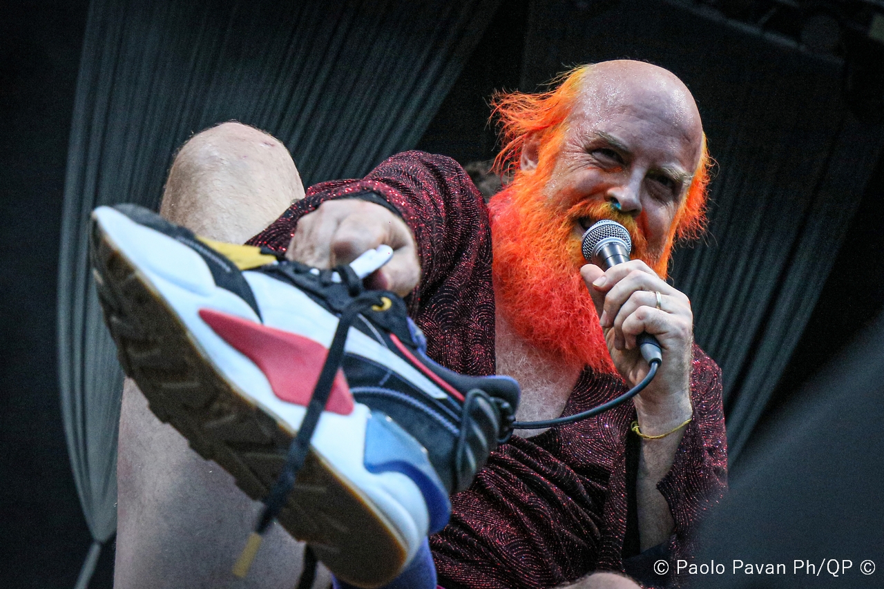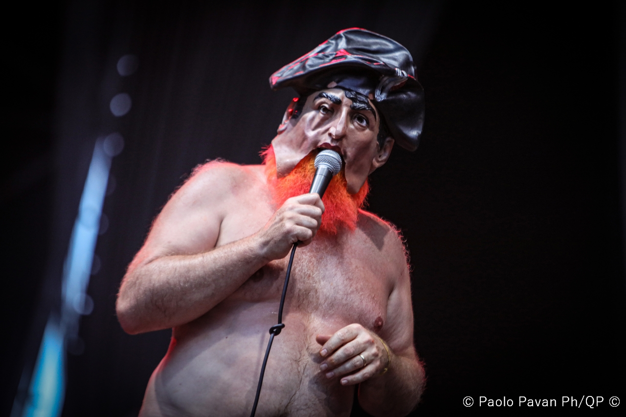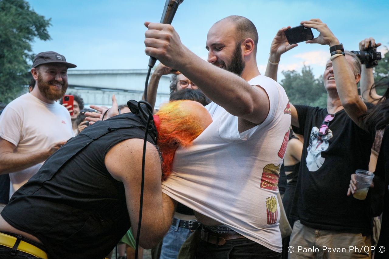Il tempo di apprezzare il loro sound ed il loro mood che il palco si incendia per l’arrivo di Les Savy Fav, gruppo alternative rock statunitense originario di New York. Uno spettacolo che è persino difficile raccontare per le continue scorribande dell’istrionico frontman della band, Tim Harrington, che ha catalizzato l’attenzione di tutto il pubblico, coinvolgendolo direttamente nella performance in uno stile che definirei quasi “Furero”. In mezzo al pubblico, per tutto lo Spazio211 con 100 metri di filo che girava come un serpente impazzito, ha coinvolto i fan in una sorta di bolgia, di girone infernale, con un carico di simpatia e di energia veramente inesauribile. Credo che in questo caso, le foto, ma soprattutto i video che sicuramente spunteranno, possano aiutare a capire il livello della performance.
