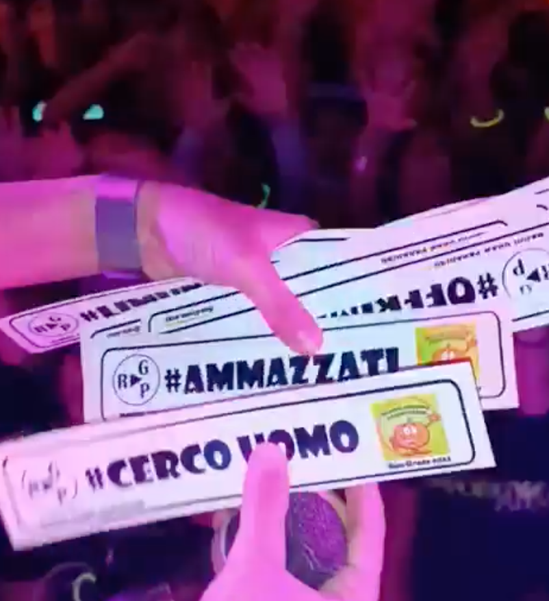 Contattato immediatamente in queste ore per chiedere conto di quanto avvenuto, anche il comitato organizzatore assicura come non fosse in alcun modo a conoscenza dei già citati adesivi, stampati e portati alla festa in modo del tutto autonomo dalla radio locale alla quale era stata affidata l’animazione della serata.