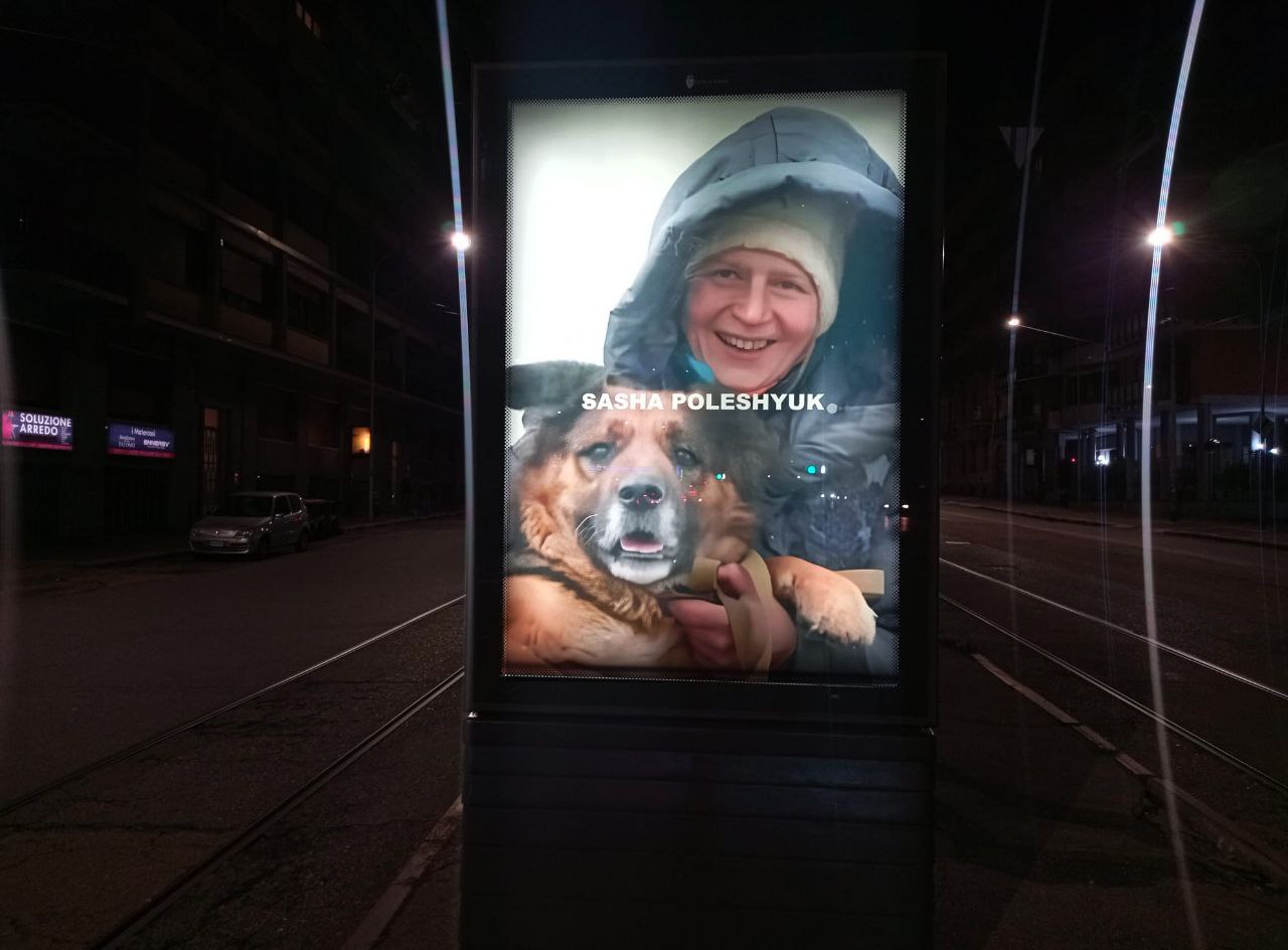 Andrea Villa affigge a Torino manifesti con le vittime della guerra in Ucraina