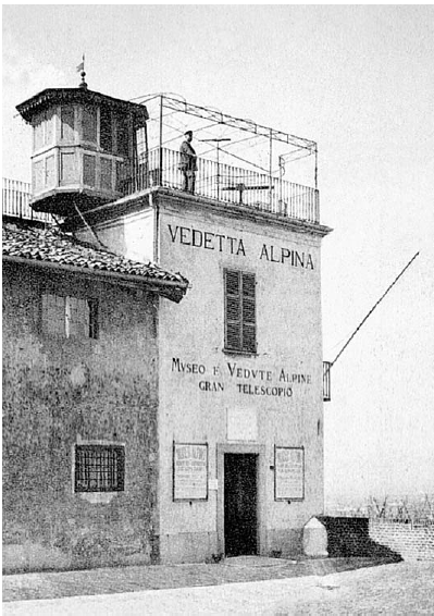 Inaugurato il 9 agosto 1874, consisteva in un semplice padiglione dotato di cannocchiale mobile, che consentiva ai visitatori di “toccare con mano” il superbo panorama alpino che solo da Torino si può godere.