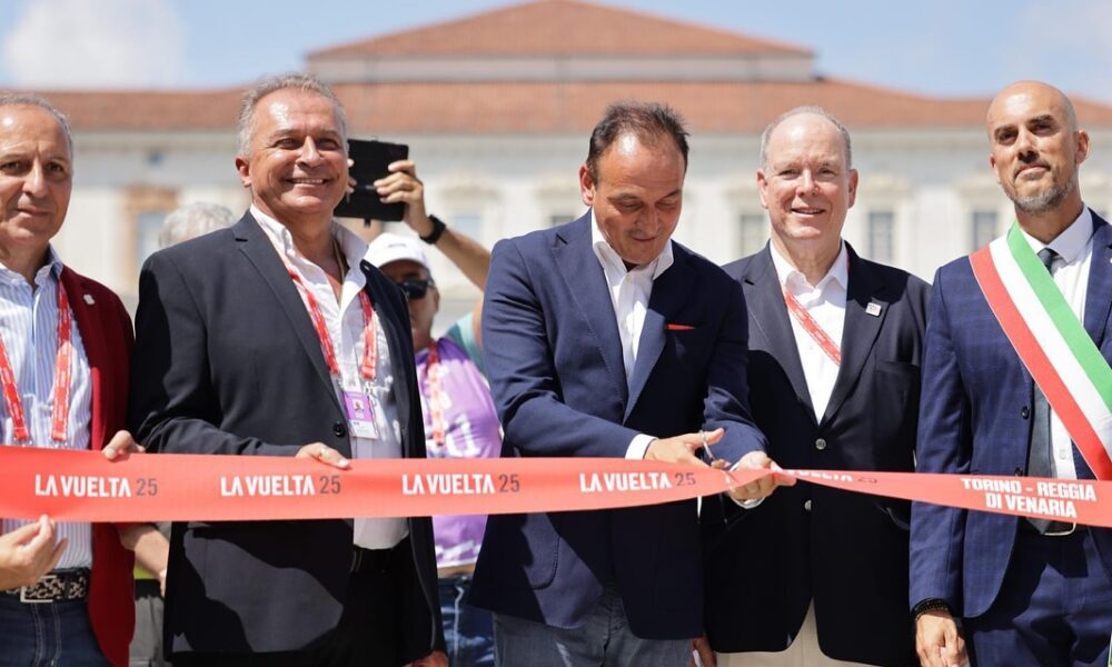 Anche il Principe Alberto di Monaco ieri al taglio del nastro di partenza della Vuelta 2025 a Venaria