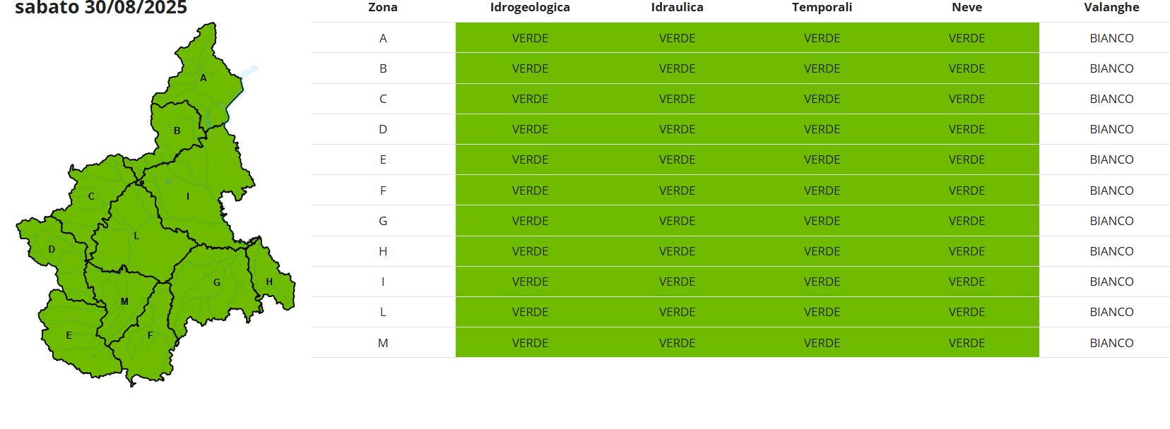 Dopo giorni di violenti nubifragi e danni causati dalle precipitazioni, per oggi nessuna allerta idrogeologica e idraulica nelle province piemontesi, anche se ARPA rileva alcune situazioni localizzate di pericolo. Sotto controllo anche il livello dei fiumi, mentre per quanto riguarda le frane, ARPA segnala inneschi anche di ampia estensione nei territori più a nord, nelle province di Novara e Verbano-Cusio-Ossola.