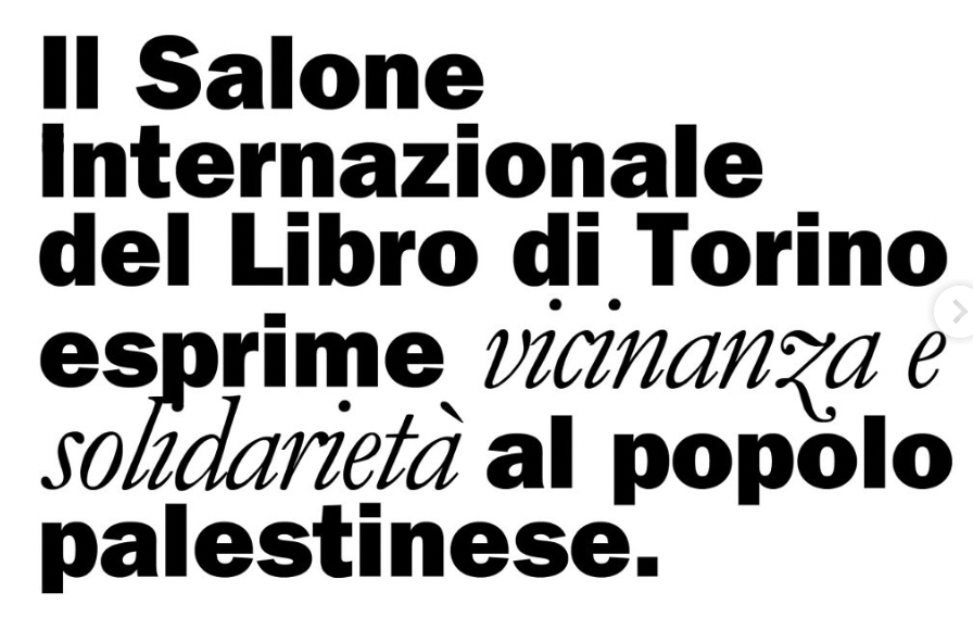 “Il Salone internazionale del libro di Torino esprime vicinanza e solidarietà al popolo palestinese. – scrive il direttivo sui social – La cultura della pace, la costruzione della pace è il faro che ci guida: uno strumento di dialogo e comprensione con cui affermare la nostra umanità”.