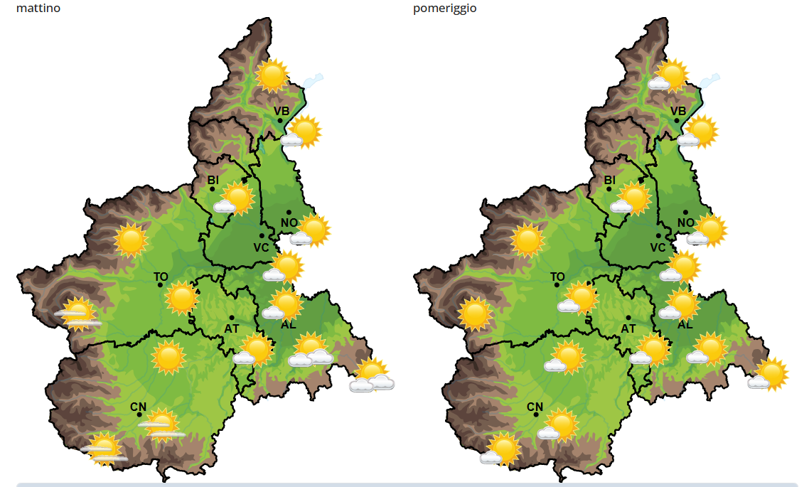 TORINO – Secondo le previsioni meteo di Arpa Piemonte, il transito di un minimo depressionario sul Tirreno settentrionale causa nuvolosità diffusa e residue precipitazioni sul Piemonte sudoccidentale nel primo pomeriggio.