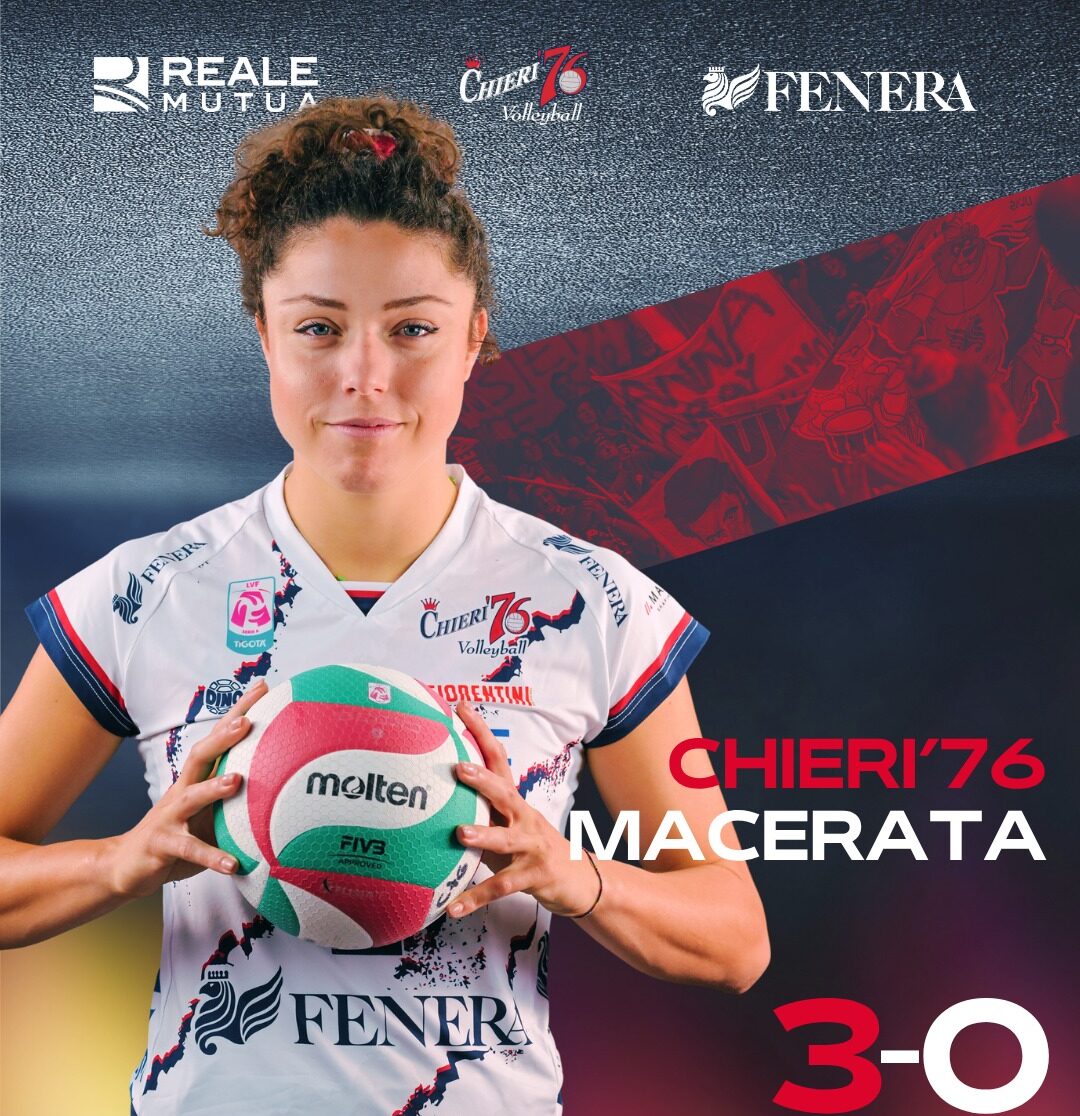 CHIERI – Tre punti preziosi conquistati e sesto successo in otto giornate per la Reale Mutua Fenera Chieri ’76 che in poco meno di un’ora e mezza supera 3-0 la Cbf Balducci Hr Macerata.