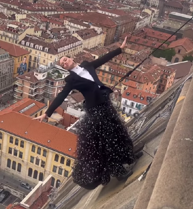La città ha infatti fatto da sfondo all’attrice e modella Kasia Smutniak e al marito, il produttore Domenico Procacci. I due, però, si sono goduti il panorama in modo alternativo: sospesi nel vuoto, entrambi imbragati a 85 metri di altezza sulla cupola della Mole. Nel video, postato sui social dalla Smutniak, si vede l’attrice – che indossa un elegante abito Armani scelto per lei dalla celebrity stylist Gloria Ripamonti – salire sulla Mole e mettere l’imbragatura. Ad attenderla Procacci che, nel frattempo, già sospeso nel vuoto improvvisa qualche passo di tip tap.