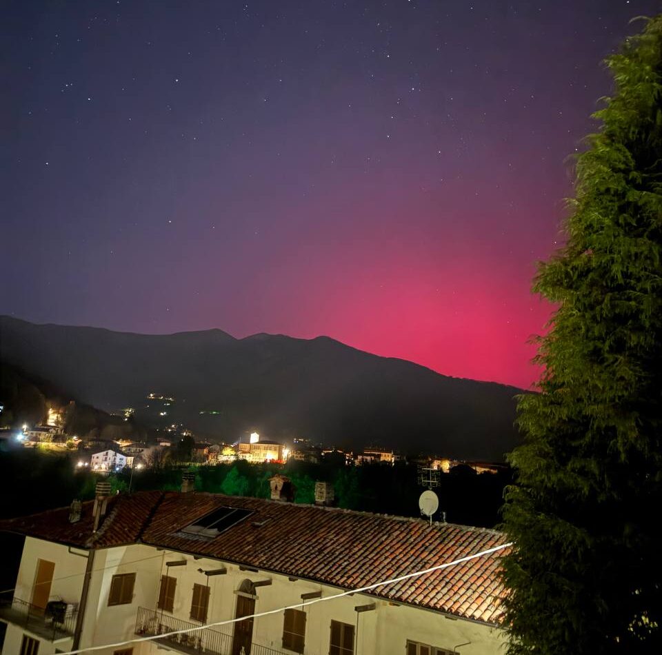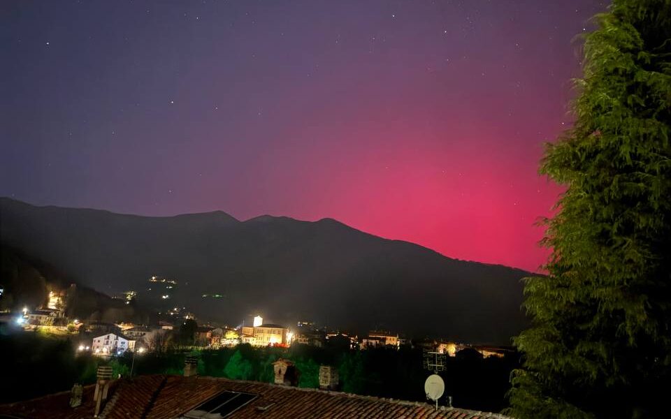 Era prevista per la serata di oggi una nuova osservazione di aurore boreali per l’arrivo di una tempesta geomagnetica di intensità G4. Ma sul Piemonte il cielo stellato è stato già rischiarato da toni di colore che dal rosa ha assunto sfumature più intense, come viola e fucsia.