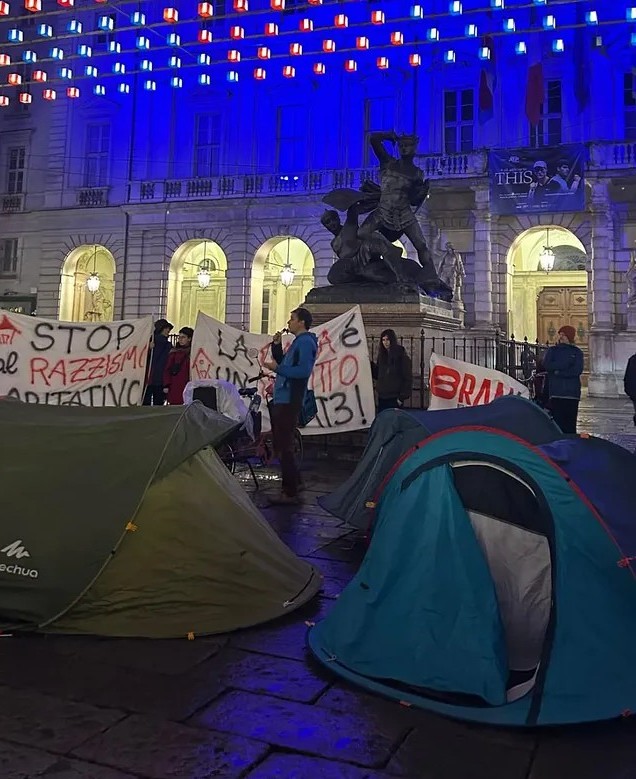 Tende davanti al municipio a Torino sabato pomeriggio: protesta contro l’emergenza abitativa