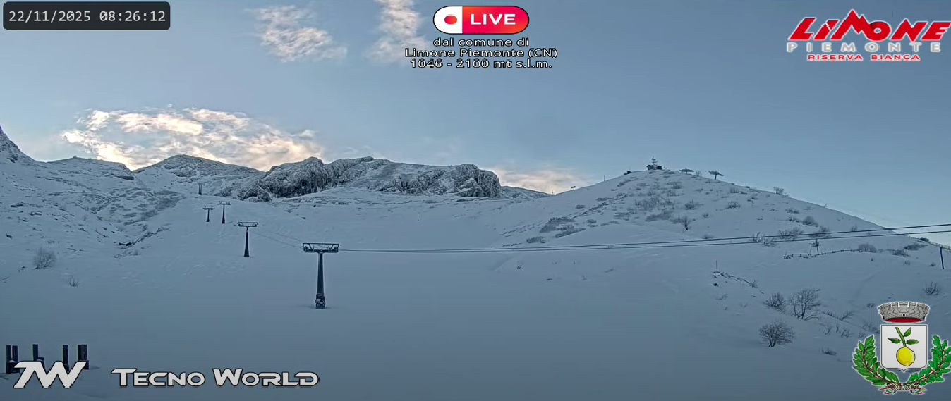 Queste sono le alture di Limone Piemonte, in provincia di Cuneo, dove tra qualche settimana probabilmente si inizierà a sciare.