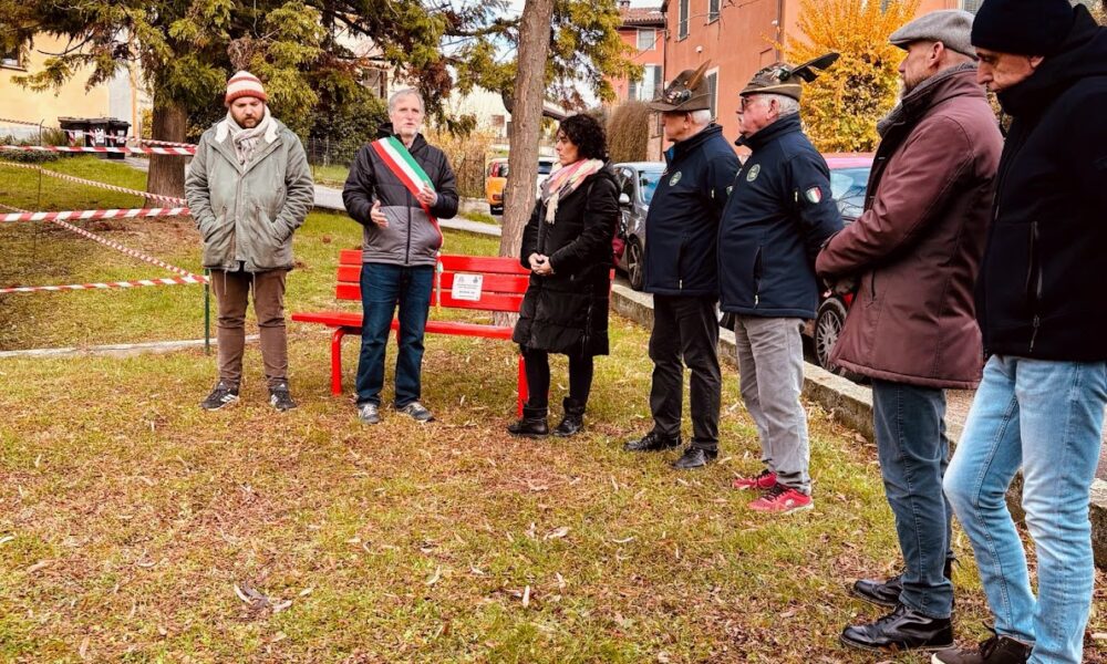 Posizionata a San Giorgio Monferrato la Panchina rossa, simbolo universale della lotta contro la violenza sulle donne – FOTO