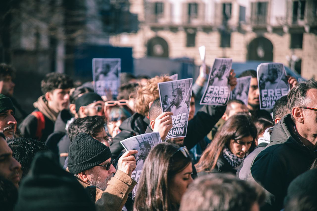 Il presidio ha visto un primo appuntamento davanti al Cpr di corso Brunelleschi, quasi a simboleggiare la struttura siciliana in cui l’imam è attualmente detenuto. Fumogeni e slogan hanno accompagnato la manifestazione, esprimendo sostegno alla causa di Shahin.