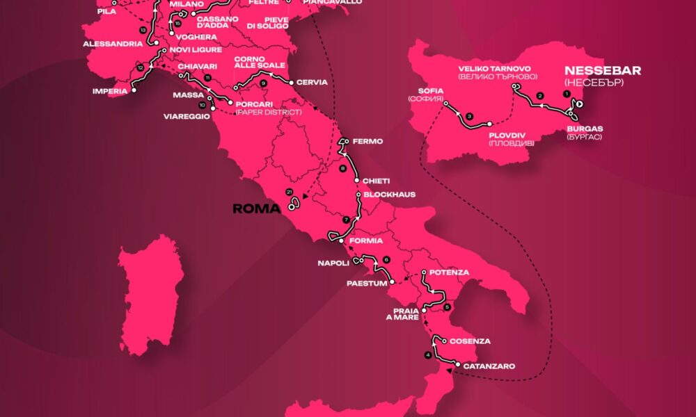 ROMA – All’Auditorium Parco della Musica di Roma sono stati presentati i percorsi del 109° Giro d’Italia, in programma dall’8 al 31 maggio, e del Giro d’Italia Women, che partirà il 30 maggio per poi terminare il 7 giugno.