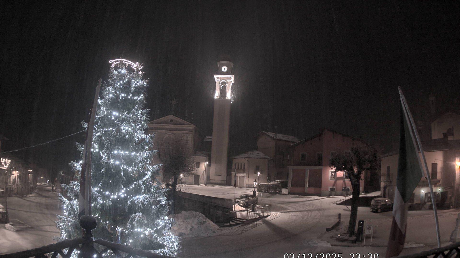 L’immagine di copertina, dalla pagina di Andrea Vuolo, mostra proprio la nevicata su Valdieri, 774 metri s.l.m., alla mezzanotte, con tanto di campanile illuminato e albero di Natale a rendere più magico il panorama.