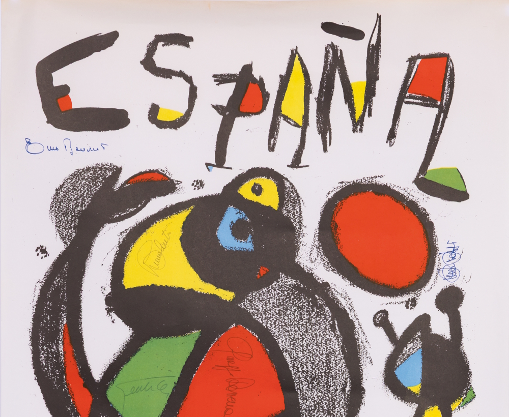 Tra i lotti più attesi spicca la litografia di Joan Mirò firmata dai protagonisti del trionfo azzurro al Mundial di Spagna 1982 (lotto 39, stima 1.500–2.000 euro), un pezzo che unisce l’estro dell’artista catalano all’epopea sportiva della Nazionale di Bearzot.