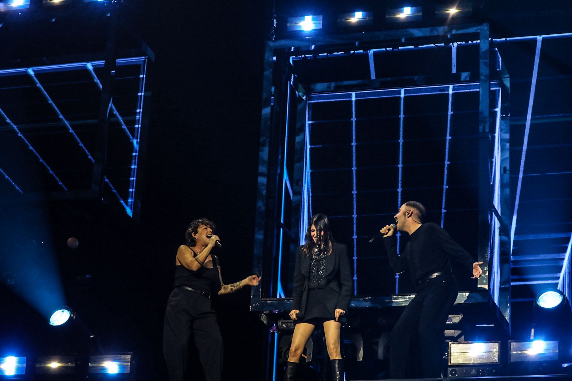 Lo show era costruito con una cura quasi maniacale: schermi monumentali, visual spettacolari in perfetta sincronia con la musica, luci e laser che tagliavano la scena con precisione chirurgica. Tutto studiato per accompagnare, senza mai sovrastarla, quella voce che resta uno dei patrimoni più riconoscibili e importanti della musica italiana degli ultimi trent’anni.