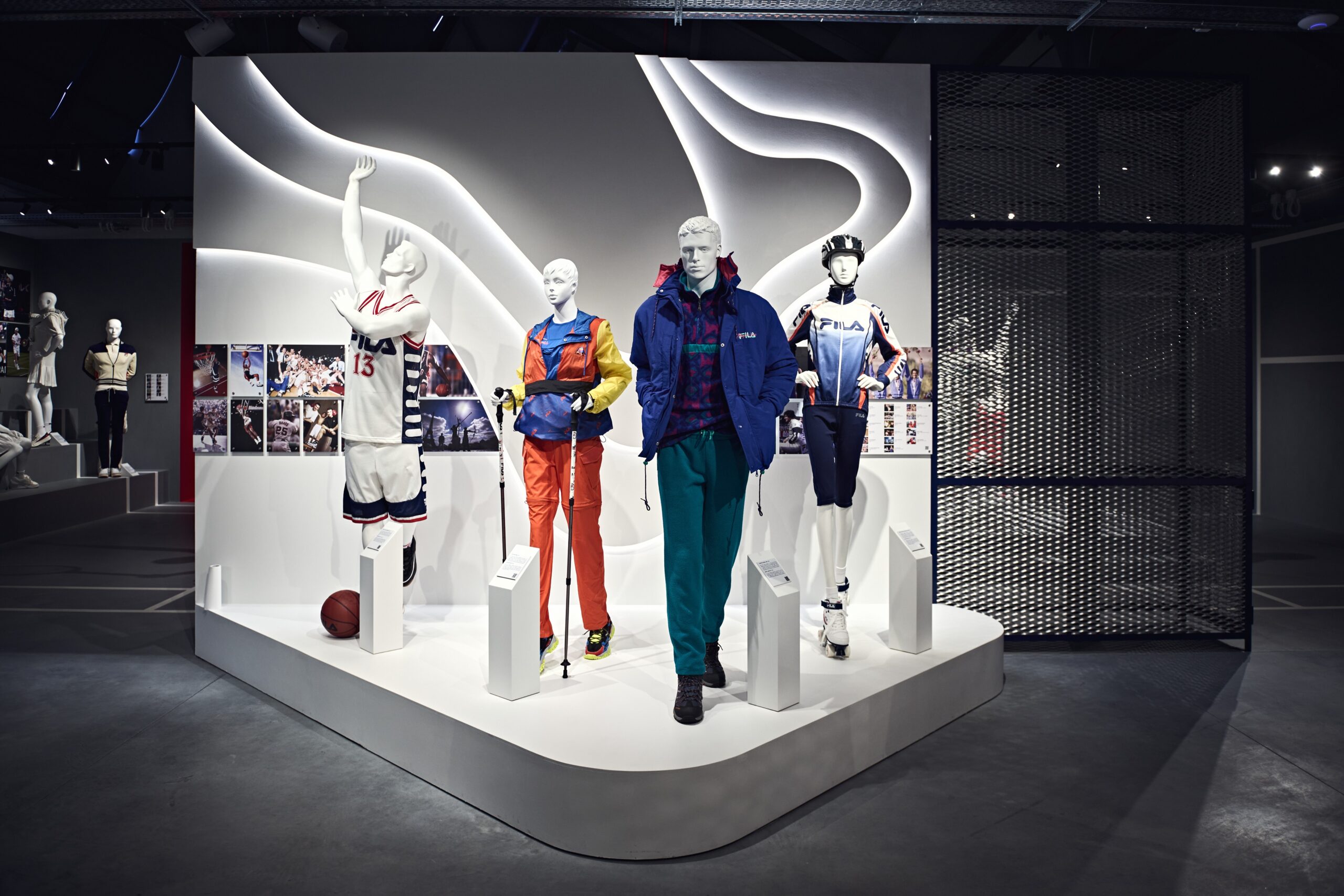 Nelle nuove sale del FILA Brand Experience Center convivono e dialogano capi storici, icone di stile, accessori, campagne pubblicitarie, materiali fotografici e visivi messi a disposizione del pubblico.