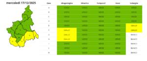 Per questo motivo Arpa Piemonte ha esteso anche per la giornata di domani una allerta gialla sul Piemonte meridionale per rischio idrogeologico, neve e valanghe con locali allagamenti, isolati fenomeni di versante e disagi per la viabilità.