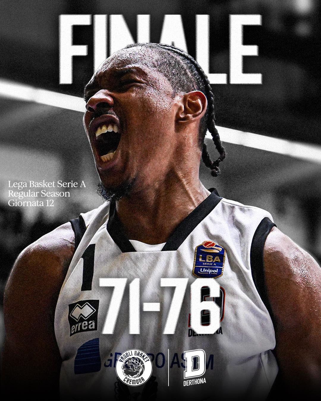 I ragazzi di Tortona partono bene e restano concentrati per tutto il match, riuscendo anche a contenere il prepotente ritorno di Cremona nell’ìultimo quarto. Il finale è 71-76