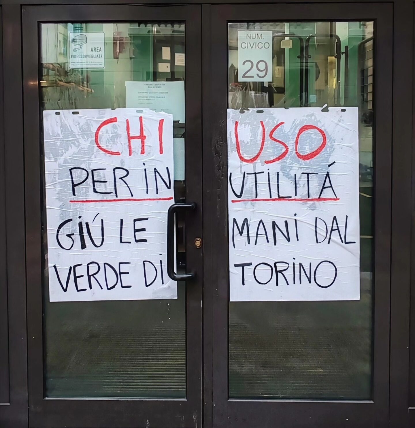 Sono stati manomessi gli ingressi degli uffici del Verde Pubblico a Torino, attaccati anche dei cartelloni