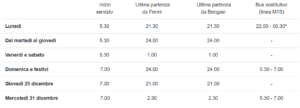 Mercoledì 24 e mercoledì 31 dicembre, vigilie di Natale e Capodanno, il servizio sarà normale, come nelle giornate feriali, per tutte le linee fino alle ore 20.00.