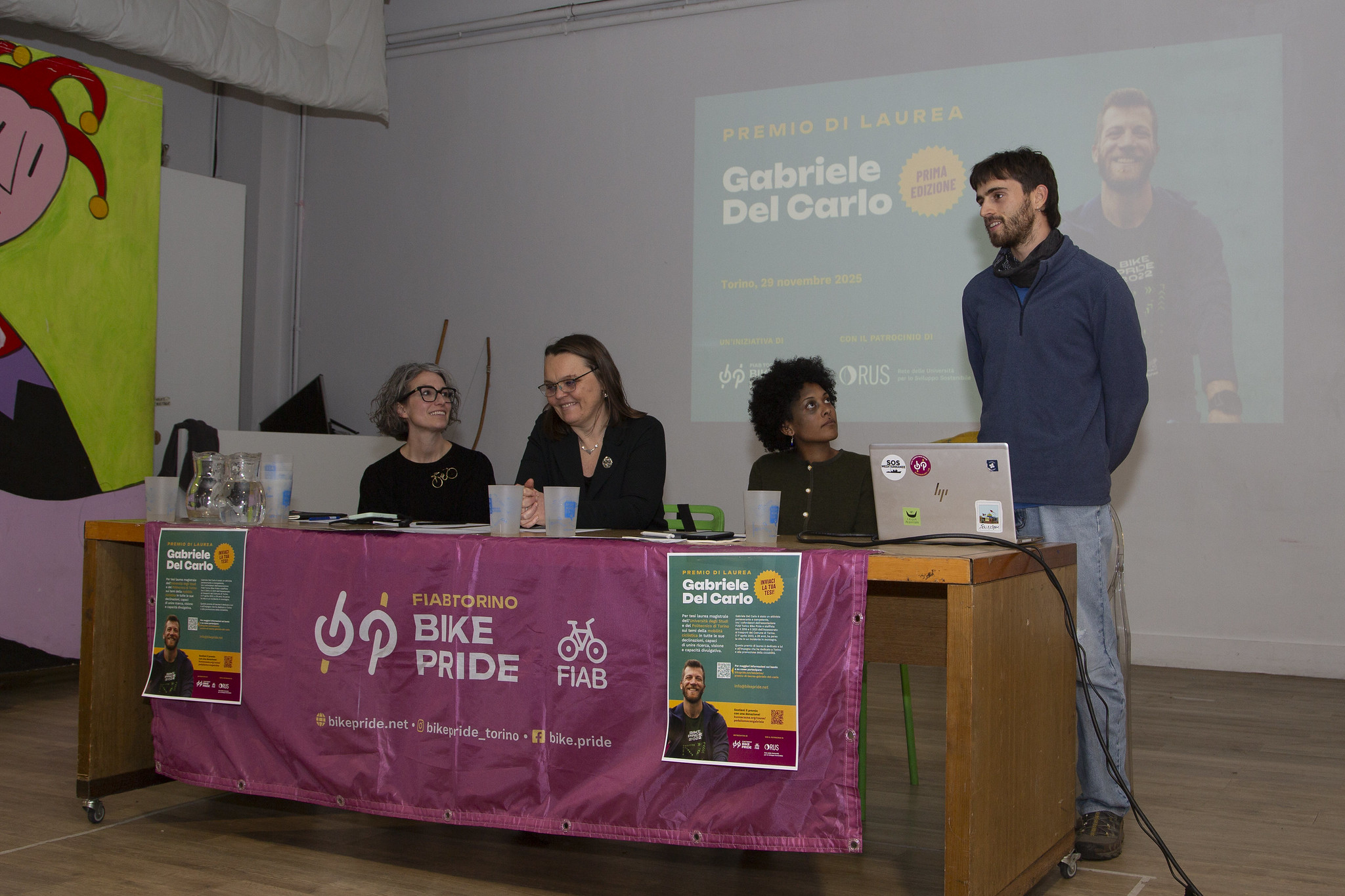 L’occasione sarà inoltre utile per ricordare l’apertura della seconda edizione del premio di laurea “Gabriele Del Carlo”, promosso da FIAB Torino Bike Pride (scadenza il 30 aprile 2026). Gabriele Del Carlo è stato un attivista tra i co-fondatori dell’associazione FIAB Torino Bike Pride e staffista tra il 2016 e il 2021 dell’Assessorato ai trasporti del Comune di Torino. Il 1 aprile 2023, a 39 anni ha perso la vita in un incidente in montagna. Questo premio di laurea è dedicato a lui e al suo impegno per Torino e per la promozione della ciclabilità.