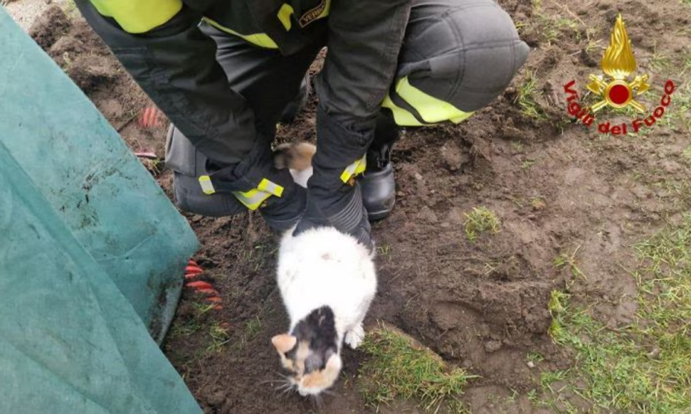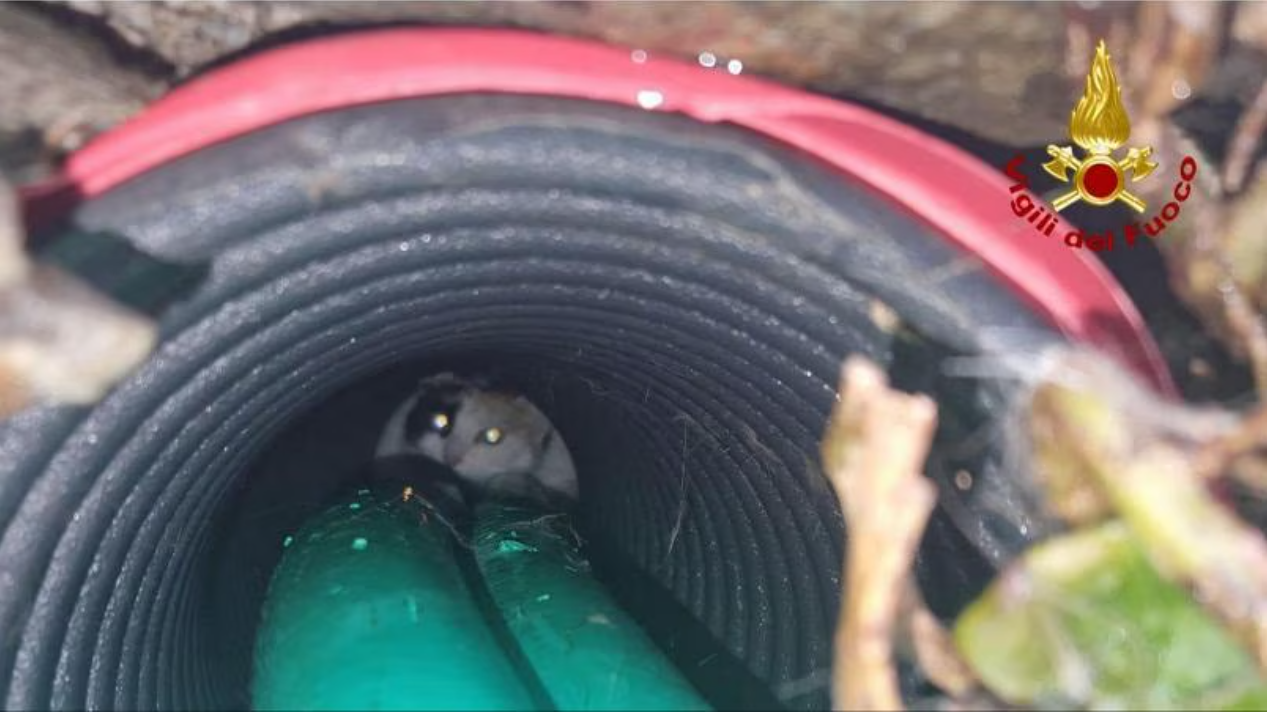Cossogno: la gattina Bianca rimane intrappolata in un tubo, salvata dai vigili del fuoco – FOTO