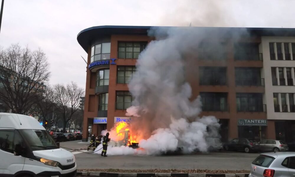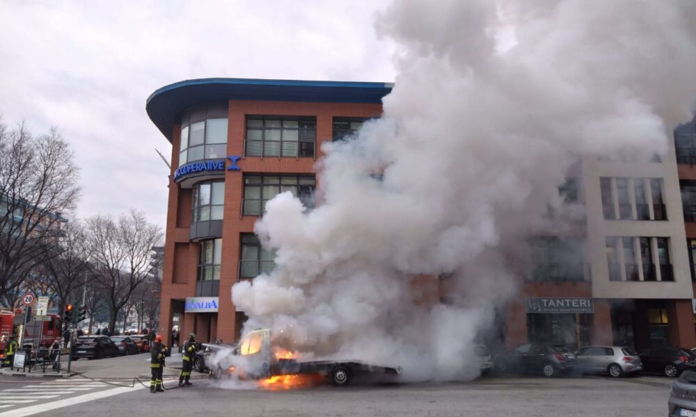 Prende fuoco un carro attrezzi a Torino in corso Marche, si è levata un’alta colonna di fumo e fiamme – FOTO