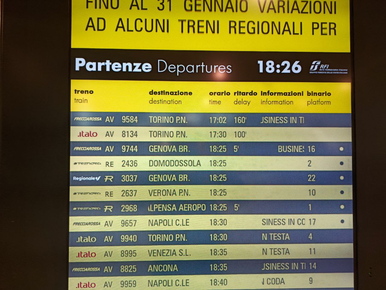 In particolare si è trasformata in un’odissea il viaggio del Frecciarossa 9584, in partenza questa mattina alle 6.20 da Reggio Calabria e con arrivo previsto a Torino alle 18.00.