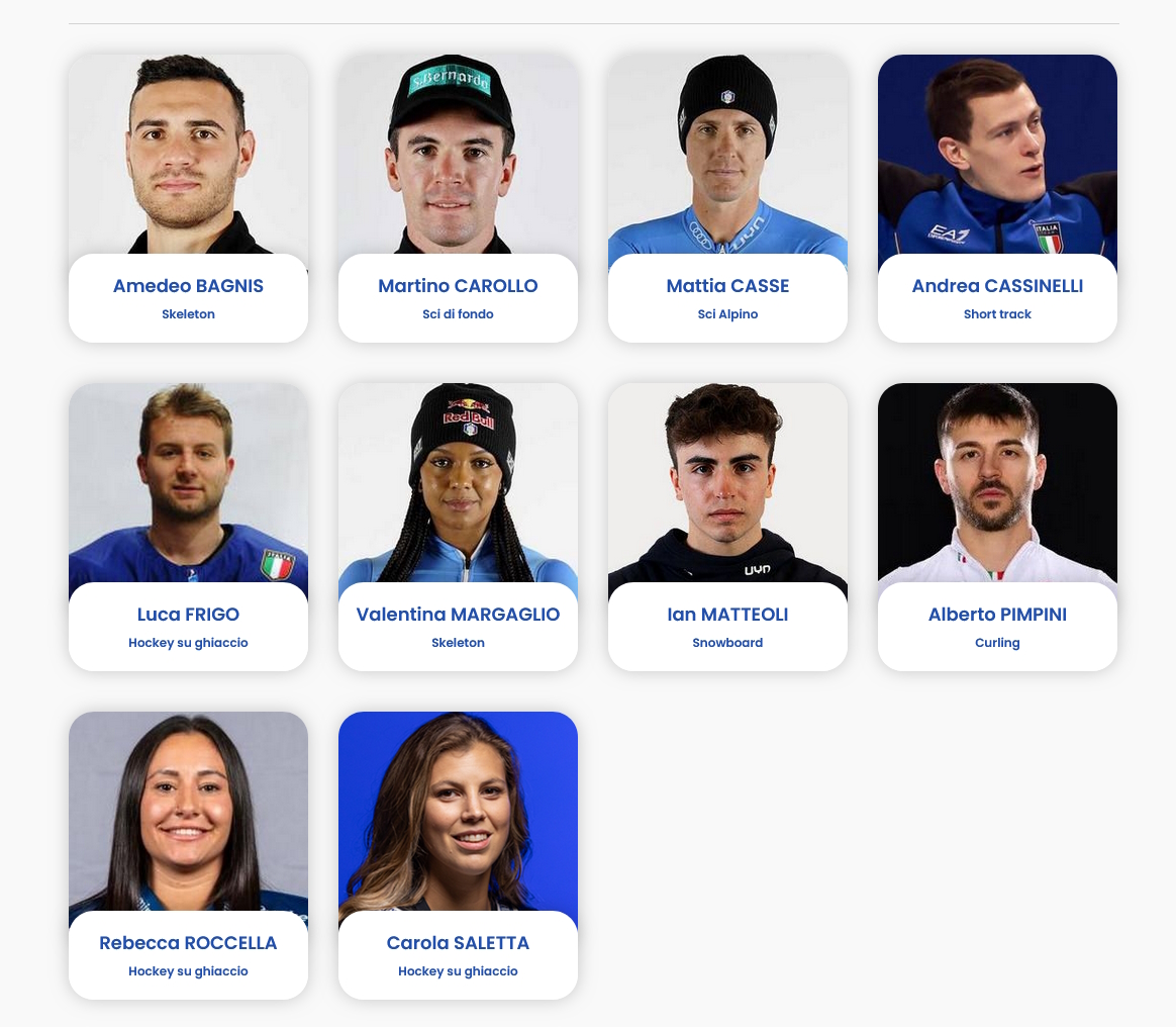 Vediamo nel dettaglio chi sono i 10 atleti piemontesi che gareggeranno alle Olimpiadi di Milano-Cortina 2026 con le presentazioni dal sito del CONI.