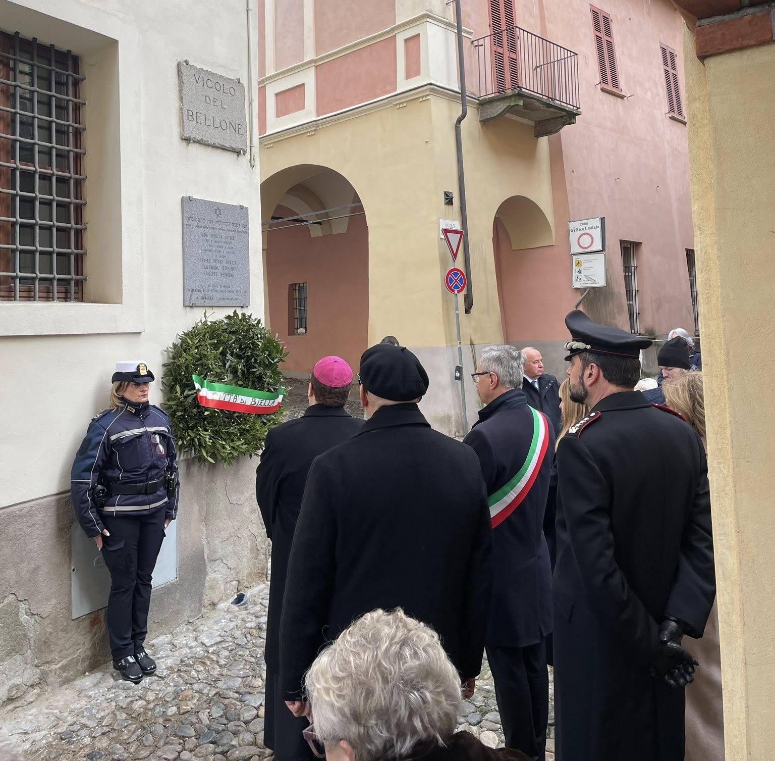 A Biella, sede di una sinagoga, la giornata commemorativa ha preso il via alle 10, con la deposizione di una corona d’alloro innanzi alla stele in memoria delle vittime della Shoah nel quartiere “Piazzo”, alla presenza del vescovo Roberto Farinella e del sindaco Marzio Olivero. La commemorazione è proseguita in collaborazione con la Comunità Ebraica di Vercelli-Biella Novara-Verbano Cusio Ossola, l’Istituto per la Storia della Resistenza e della Società Contemporanea nel Biellese, nel Vercellese, in Valsesia, con una cerimonia a Palazzo Gromo Losa, per un momento di riflessione con studenti e autorità. La presidente della Comunità Ebraica di Vercelli – Biella, Novara e VCO Rossella Bottini Treves ha annunciato durante la cerimonia la posa di cinque pietre di inciampo a Biella, quartiere Piazzo, nel 2026.