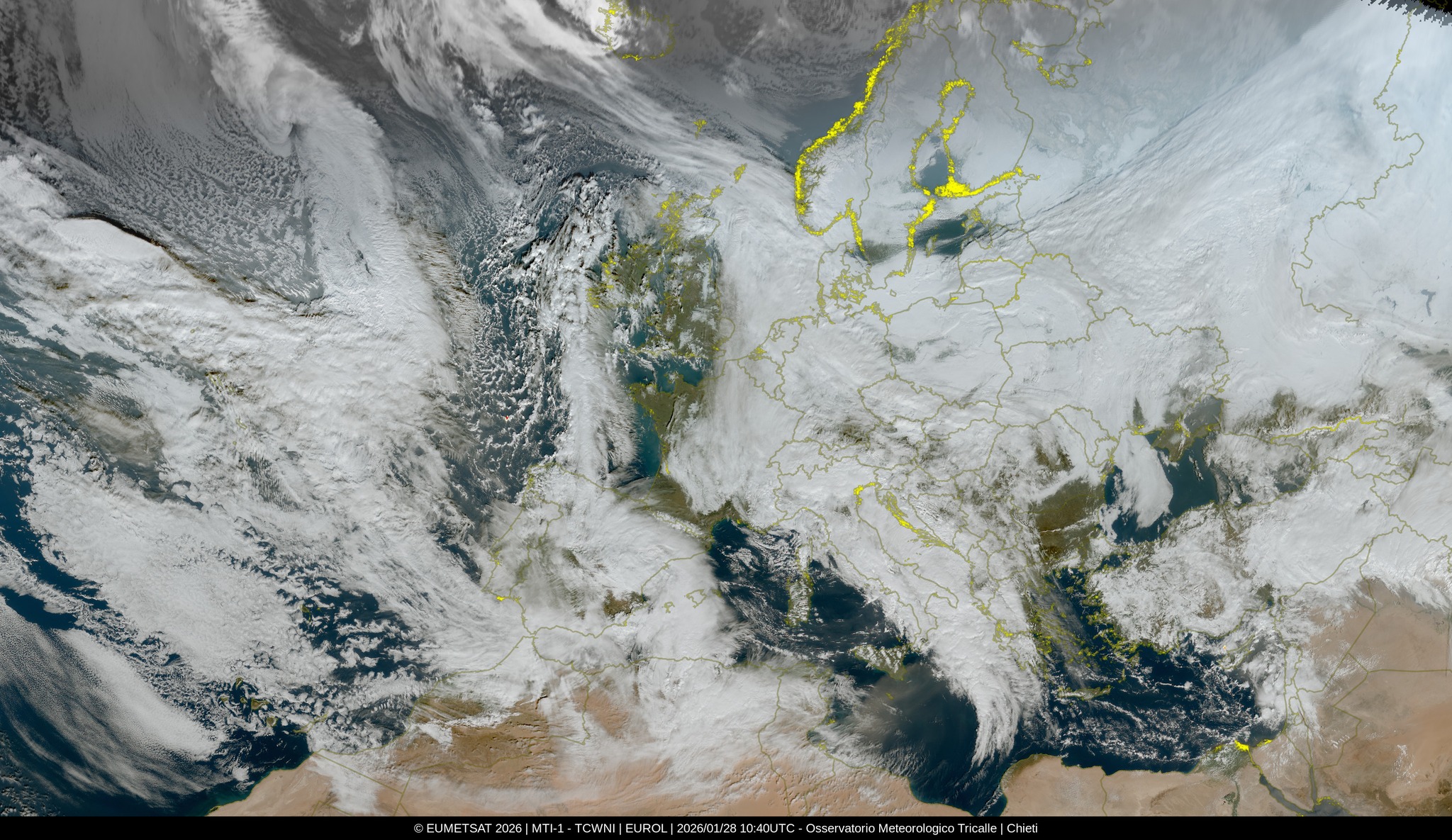 TORINO – Quella che potrebbe sembrare una “caotica immagine satellitare” è in realtà la radiografia fedele della situazione meteorologica che da oltre due settimane coinvolge il Piemonte e tutto il bacino del Mediterraneo. Come spiega il meteorologo torinese Andrea Vuolo, la nostra regione sta vivendo una fase decisamente movimentata, con precipitazioni anche molto intense in un periodo dell’anno — gennaio — tradizionalmente più asciutto per il Piemonte.