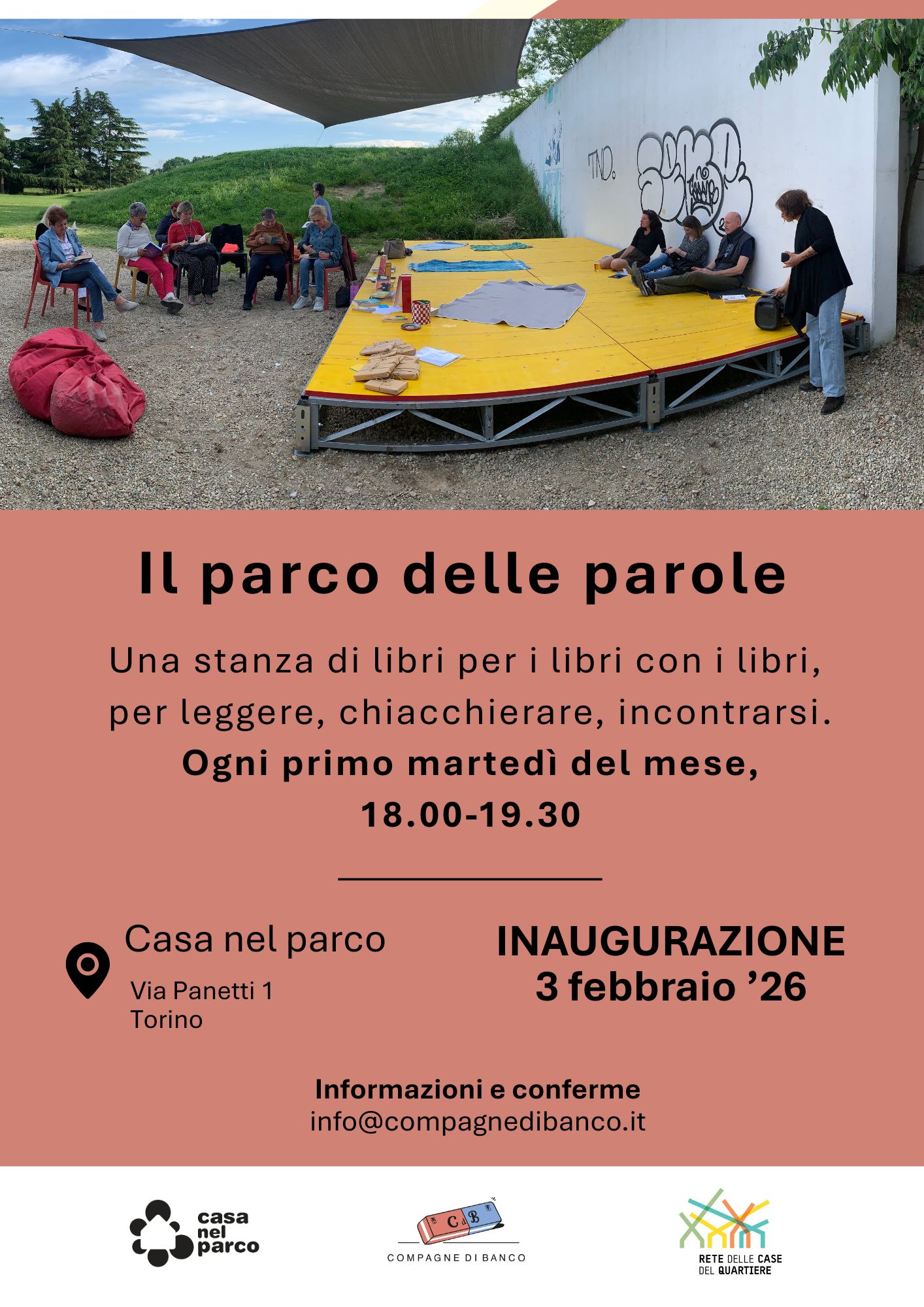 La scelta della sede non è casuale. La Casa nel Parco ospita già una sezione della Biblioteca Condivisa e Diffusa, progetto curato da Compagne di Banco che si occupa del recupero e della ricondivisione di libri destinati al macero. Un lavoro che unisce cultura e sostenibilità, dando nuova vita a volumi che altrimenti andrebbero perduti.
